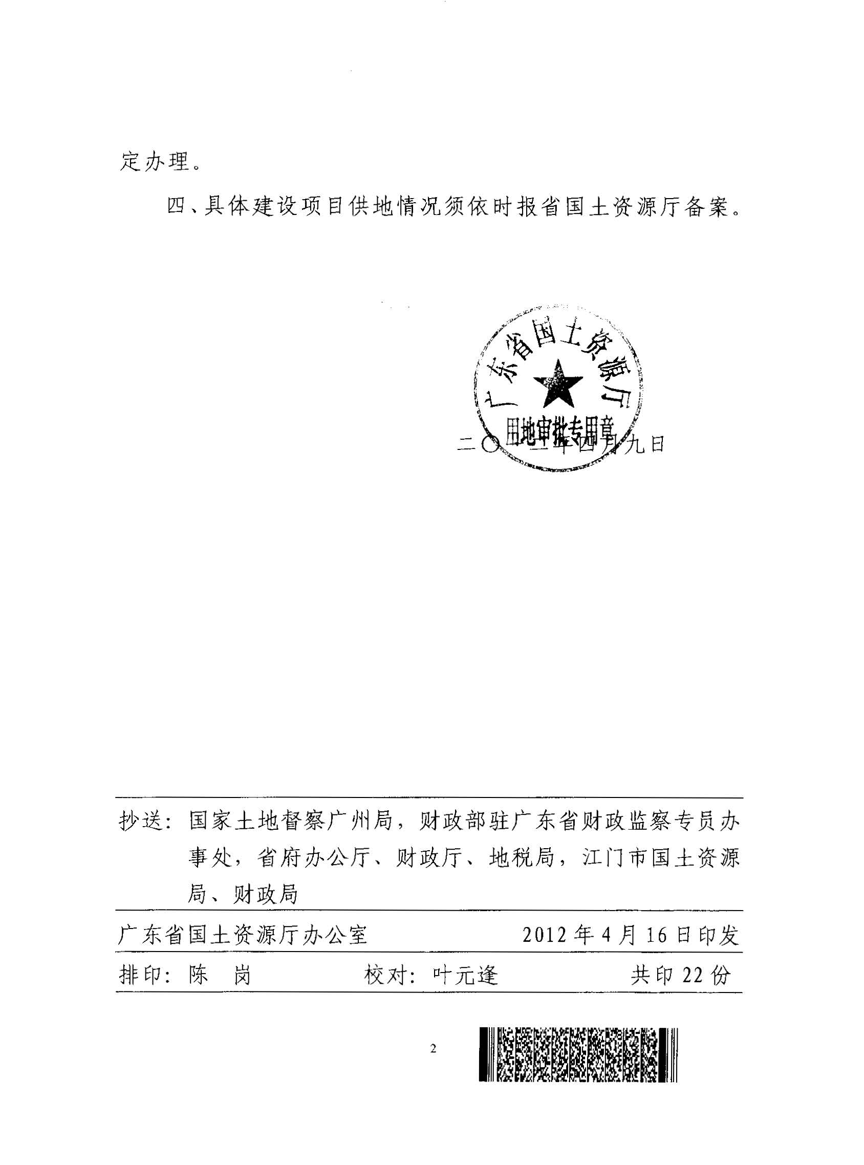 開平市2011年度第四批次城鎮(zhèn)建設(shè)用地的批復(fù)