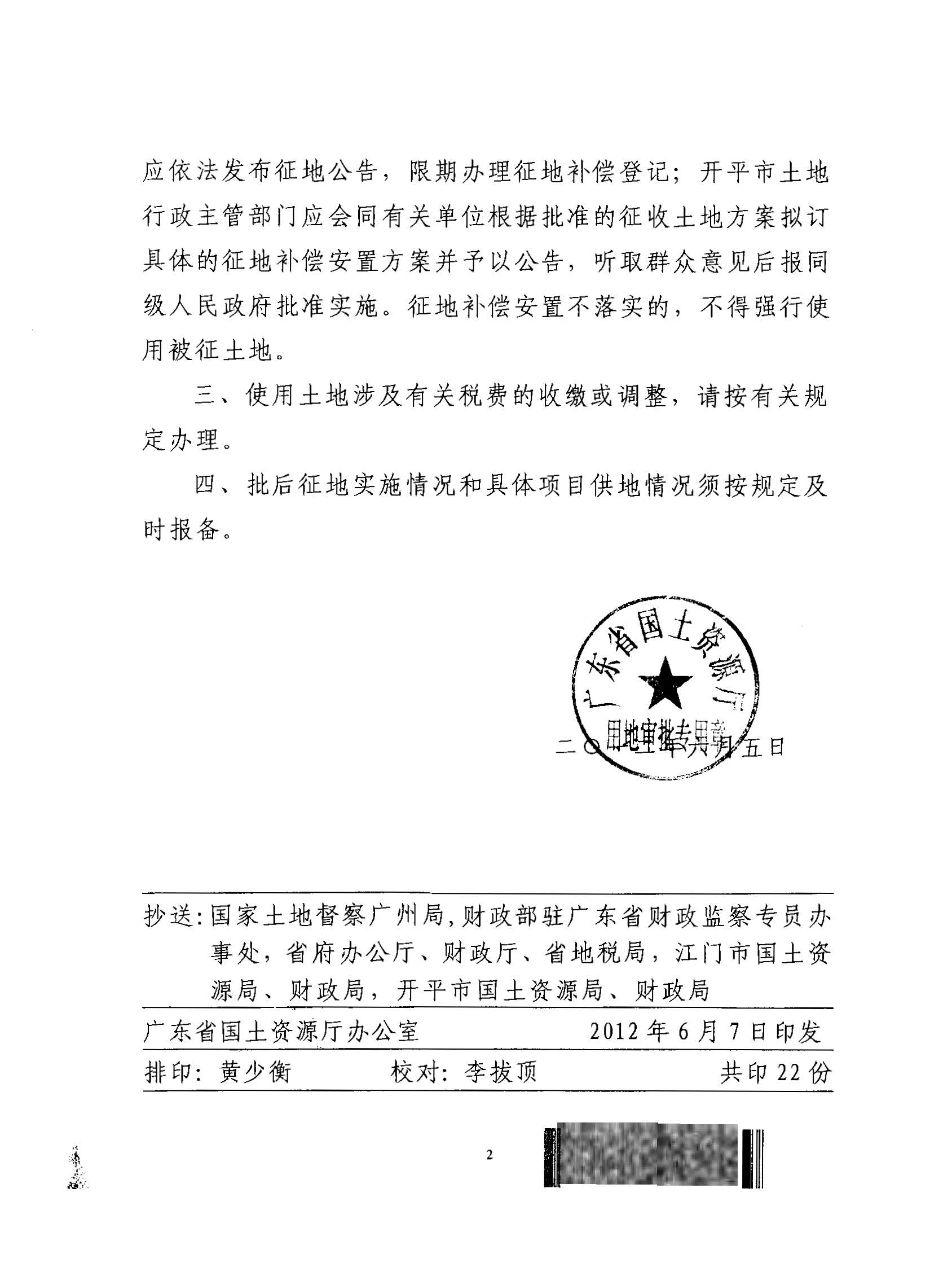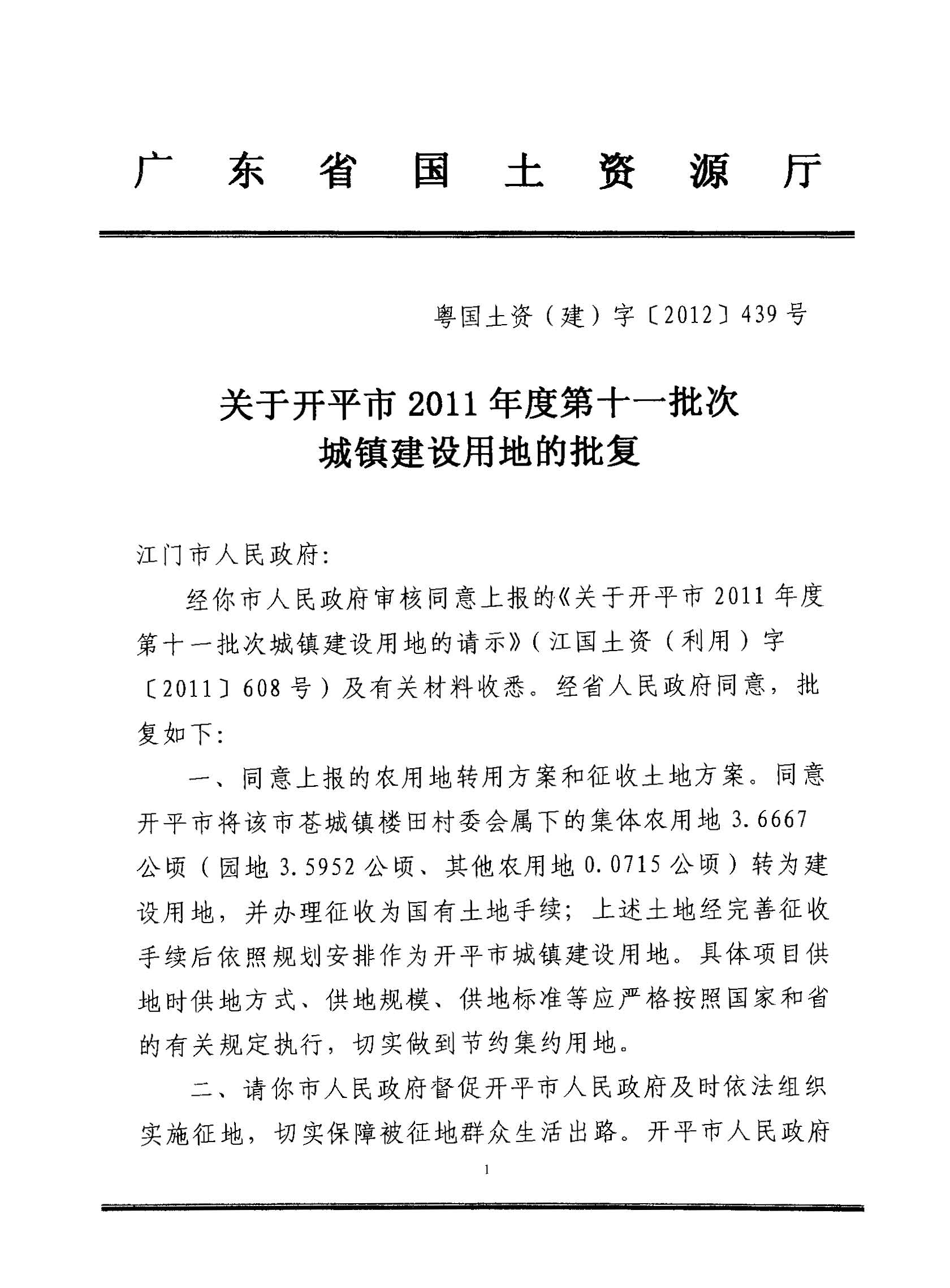 開(kāi)平市2011年度第十一批次城鎮(zhèn)建設(shè)用地的批復(fù)