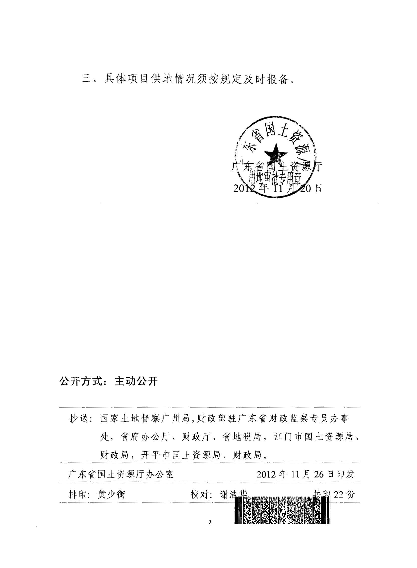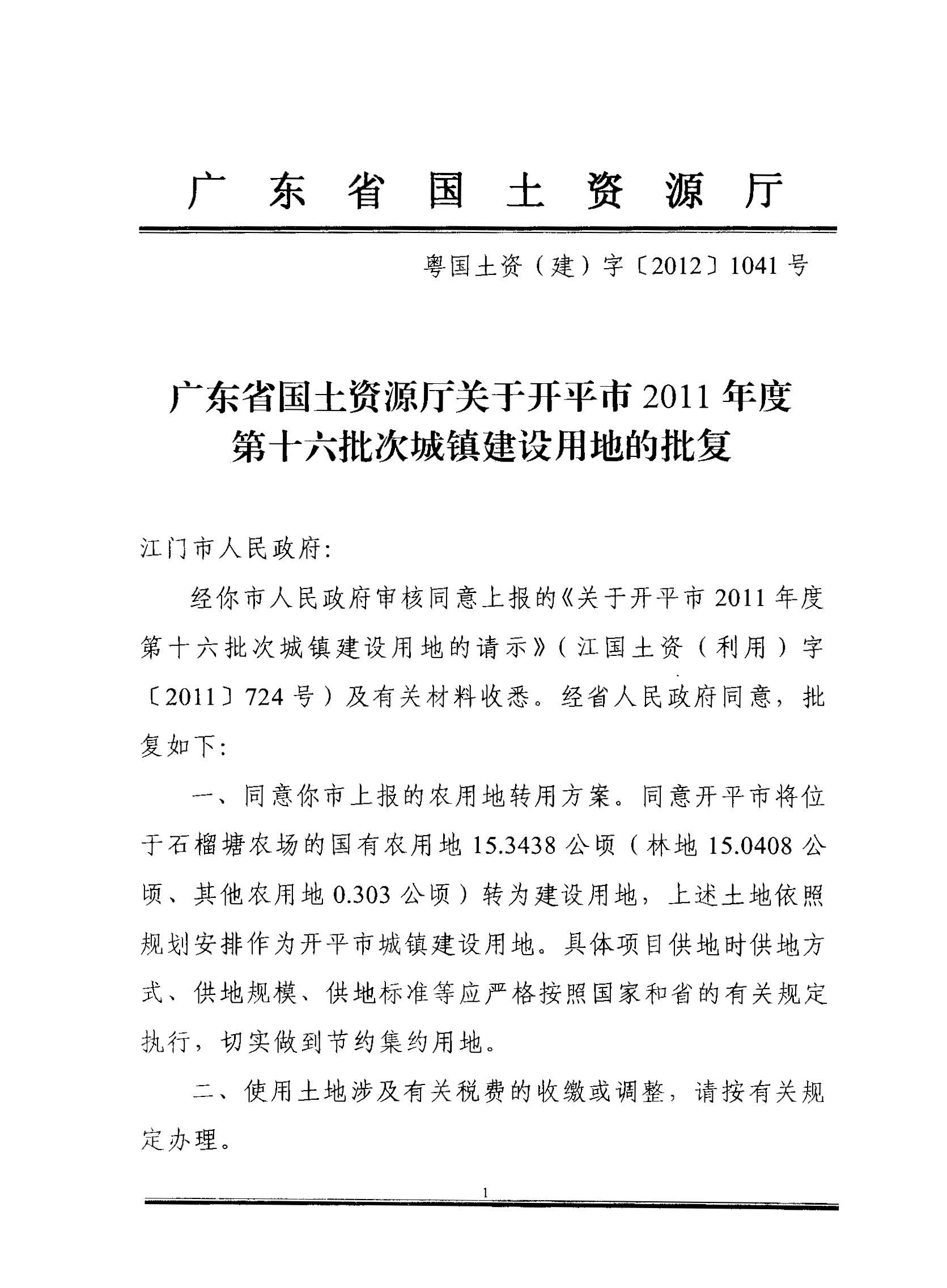 開平市2011年度第十六批次城鎮(zhèn)建設(shè)用地的批復(fù)