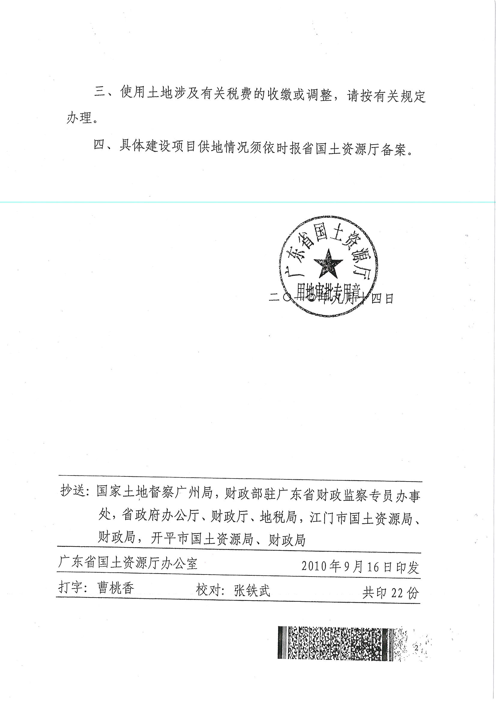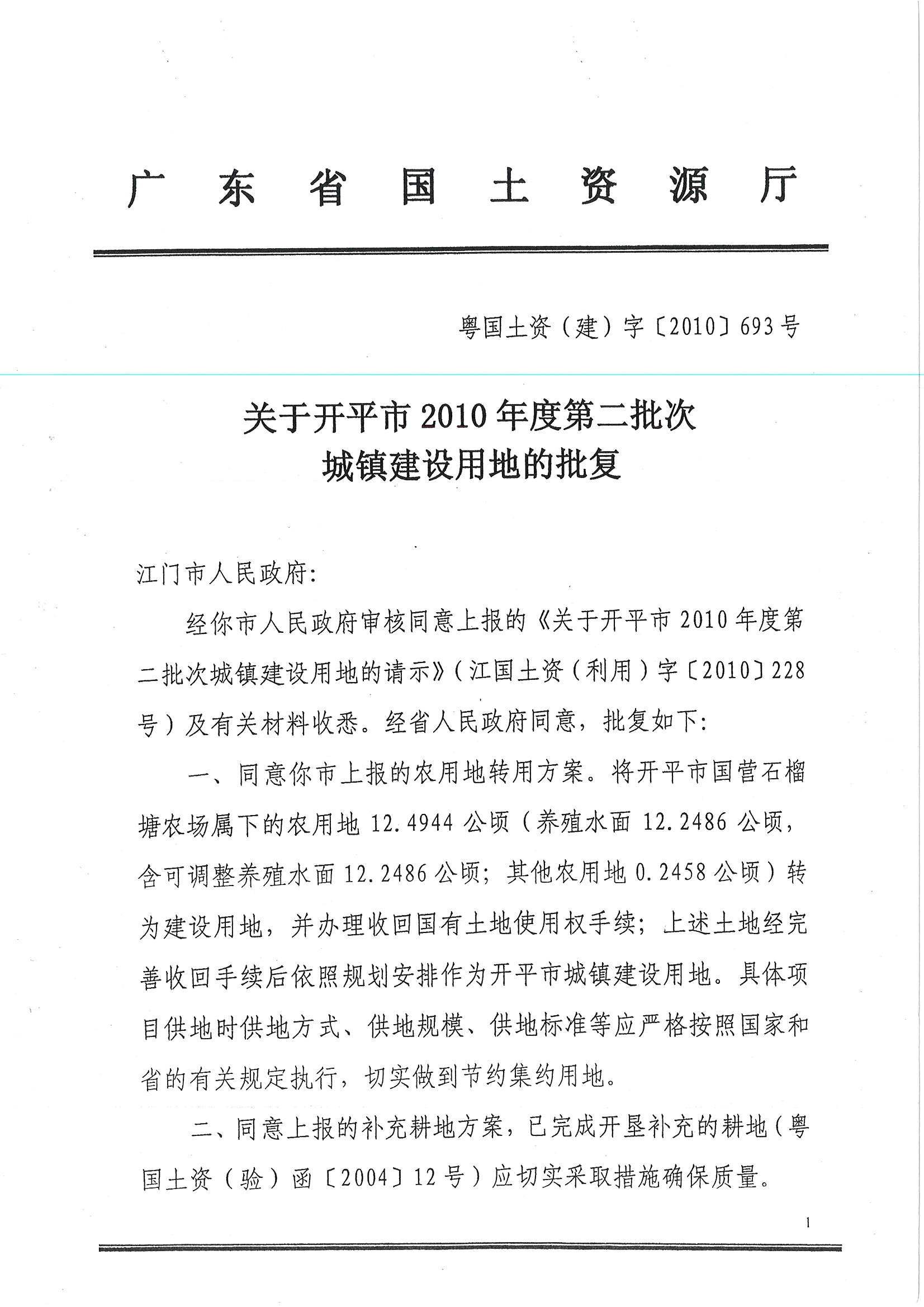 開平市2010年度第二批次城鎮(zhèn)建設(shè)用地的批復(fù)
