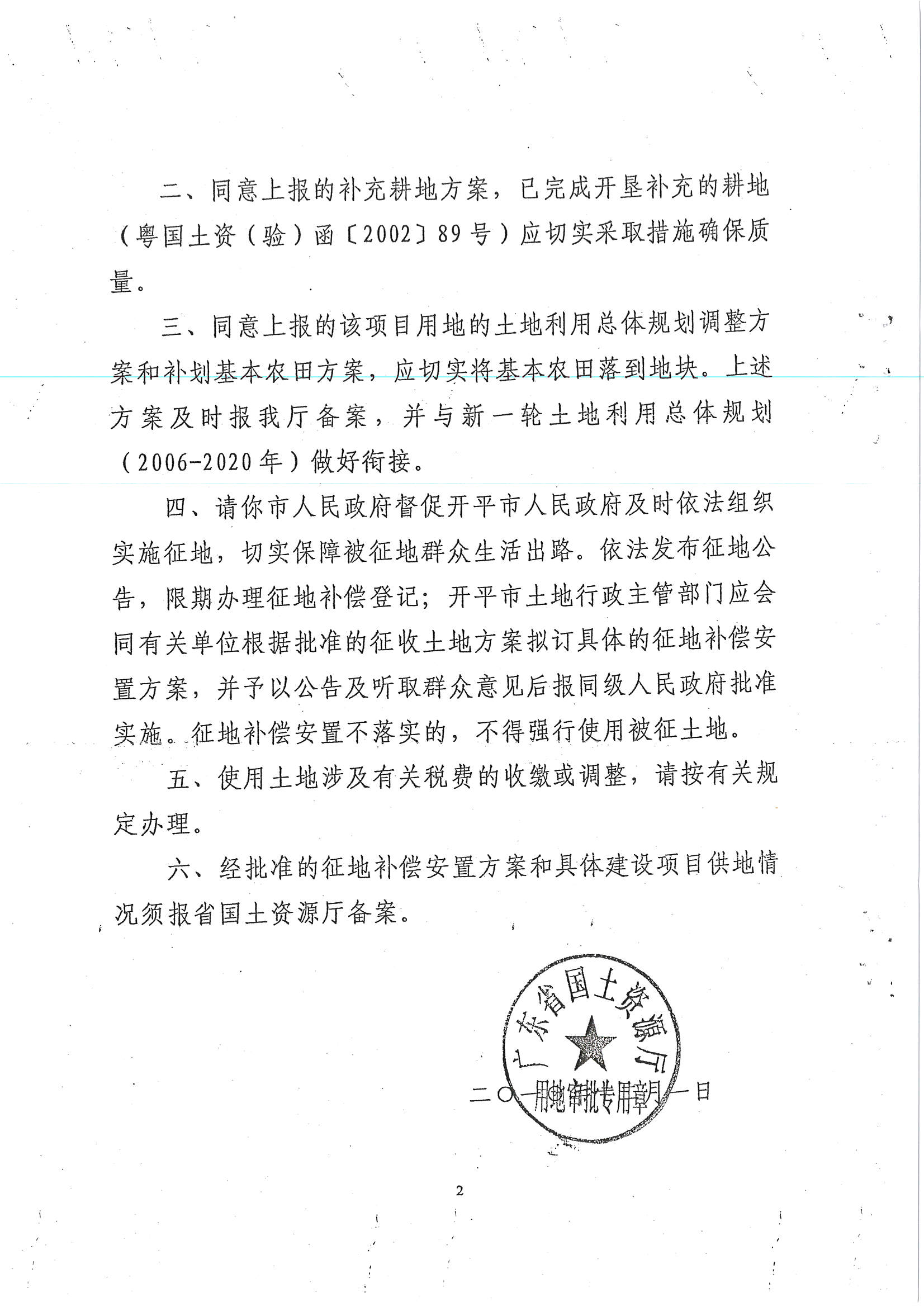 開陽高速公路梁金山立交至開平市區(qū)連接線工程建設(shè)用地的批復(fù)