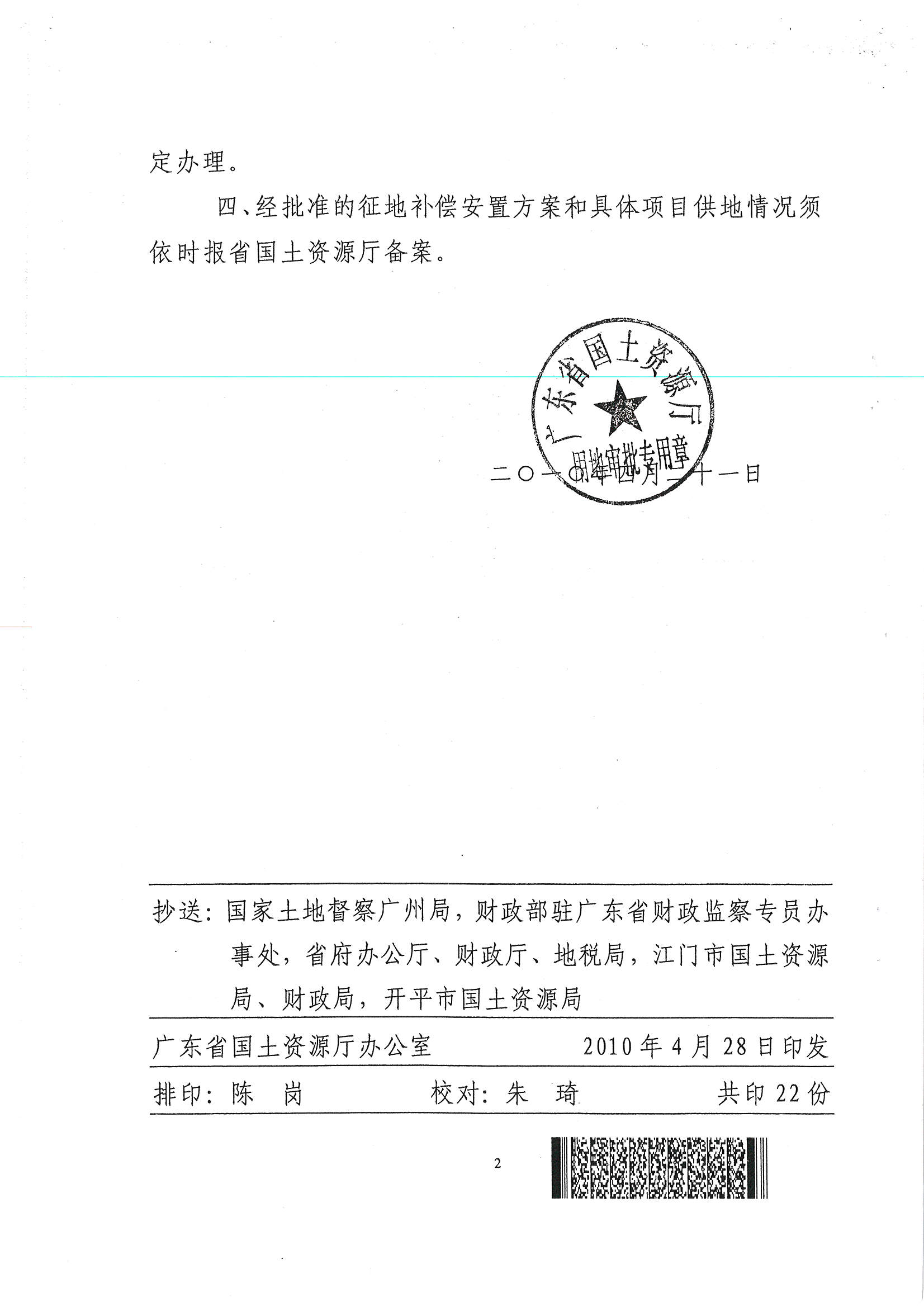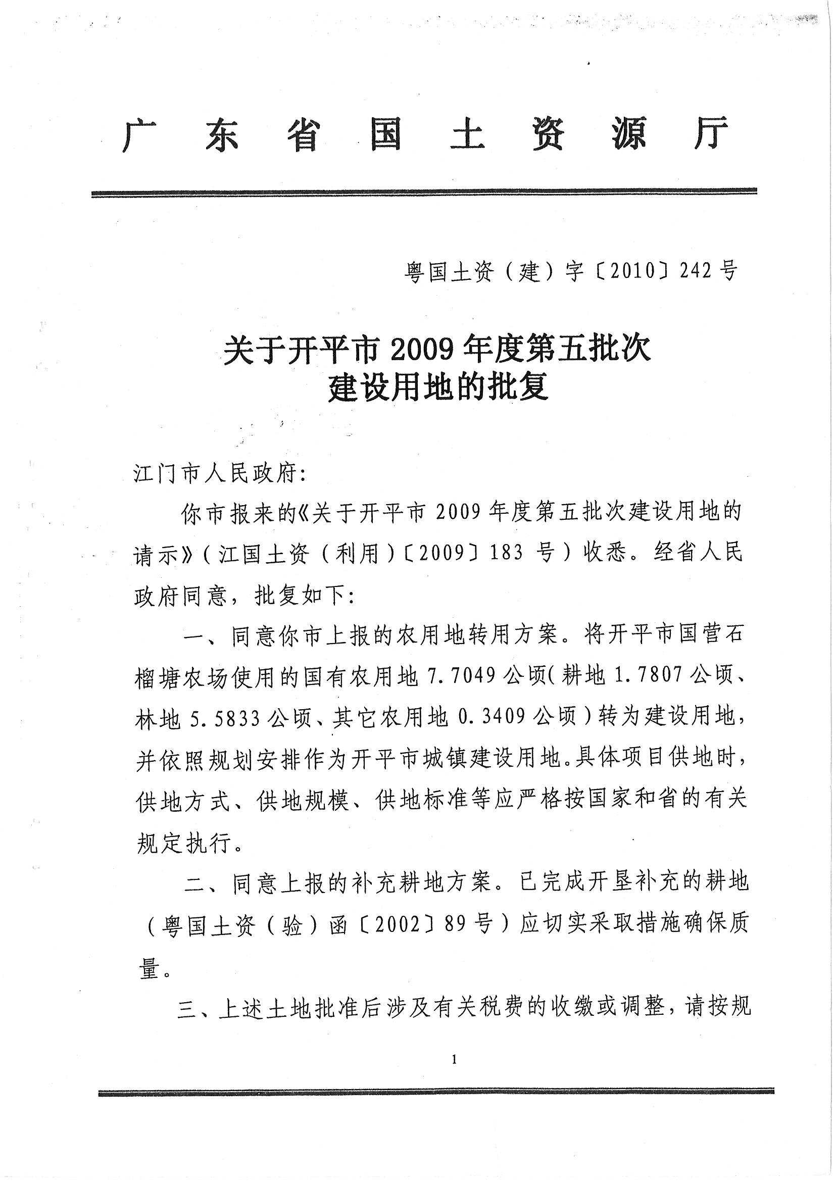 開平市2009年度第五批次建設(shè)用地的批復(fù)