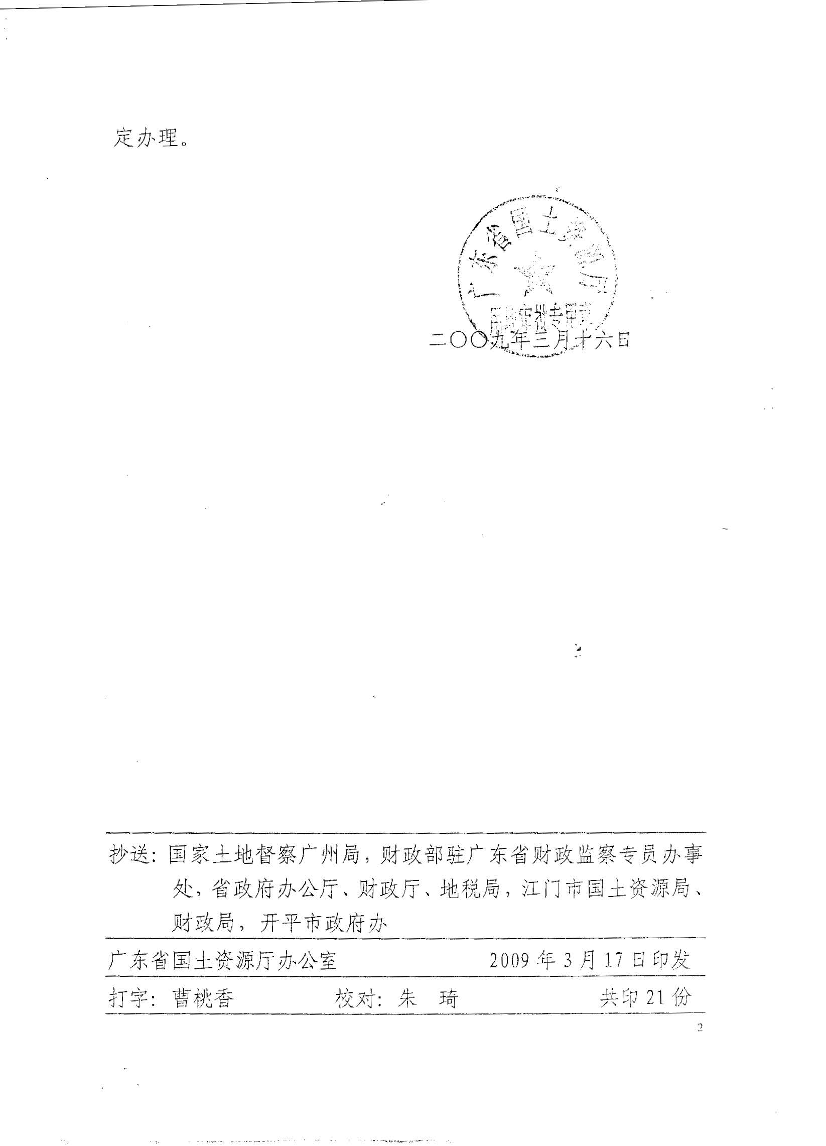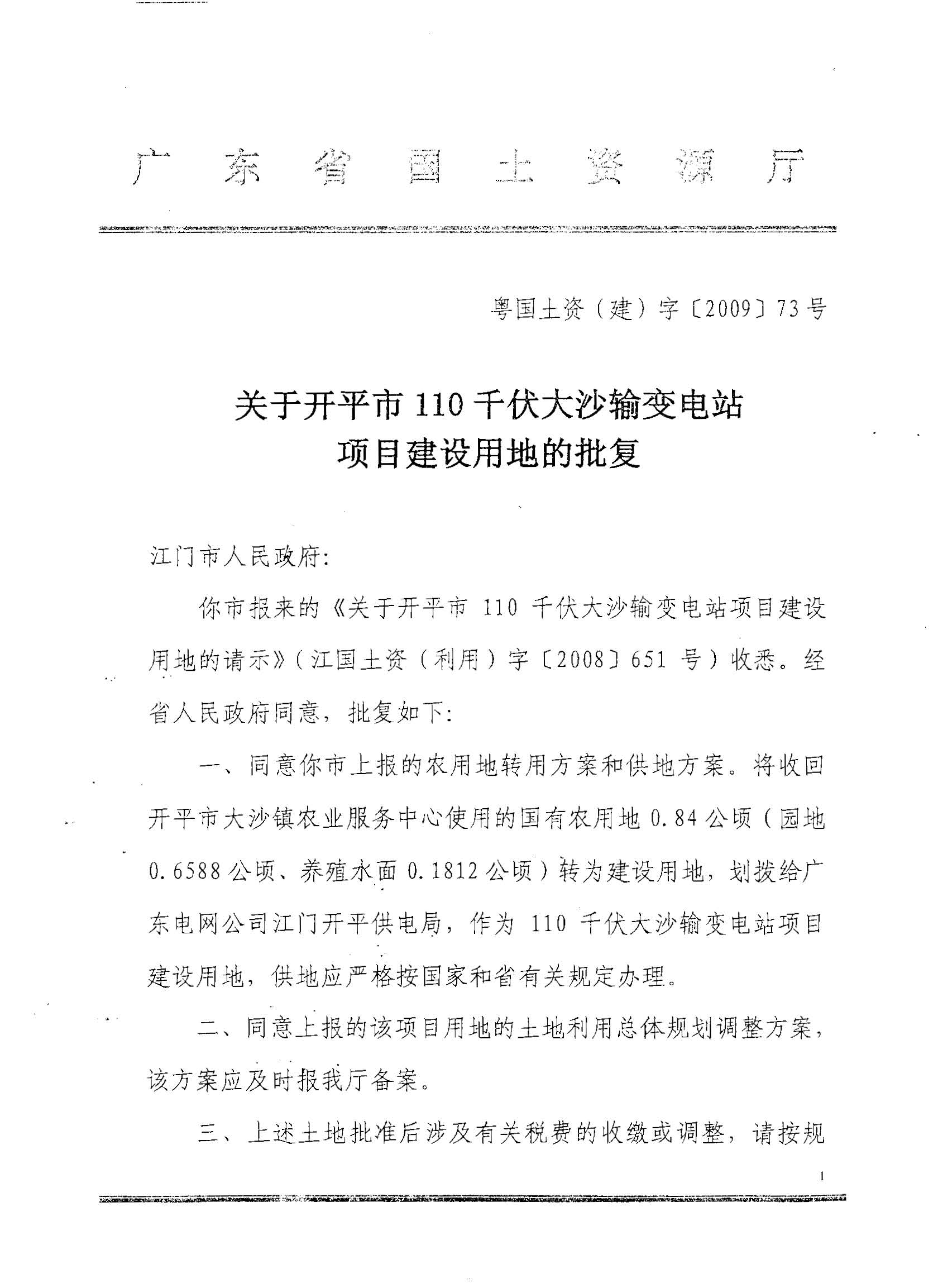開平市110千伏大沙輸變電站項目建設(shè)用地的批復(fù)