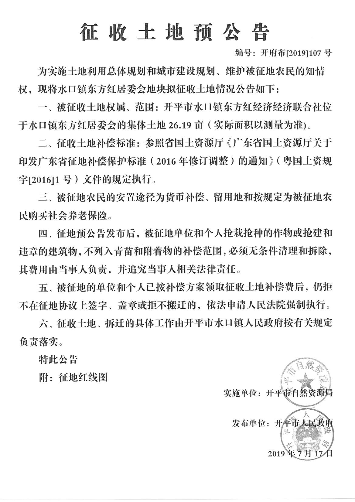 水口鎮(zhèn)東方紅居委會地塊征收土地預(yù)公告