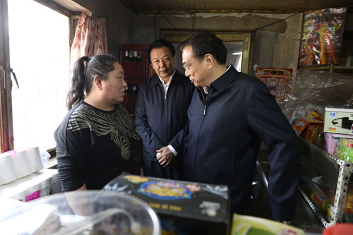 ——2014年3月27日,李克強(qiáng)在赤峰棚戶區(qū)看望殘疾商戶