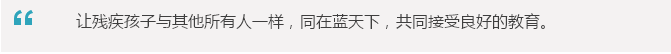 2014年3月,全國特殊教育工作電視電話會議在京召開,李克強(qiáng)作重要批示:辦好特殊教育,對于保障殘疾人平等參與社會的權(quán)利、增加殘疾人家庭福祉和促進(jìn)社會公平正義具有十分重要的意義,也是教育現(xiàn)代化的重要內(nèi)容。各級政府要高度重視,帶著深厚的感情,履職盡責(zé),特教特辦,認(rèn)真實(shí)施好特殊教育提升計(jì)劃,讓殘疾孩子與其他所有人一樣,同在藍(lán)天下,共同接受良好的教育。