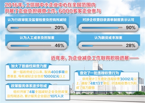 他還表示,通過(guò)這幾年的工作,企業(yè)減負(fù)取得了明顯成效。一是推動(dòng)建立了涉企收費(fèi)清單制度,督促相關(guān)部門(mén)和各地區(qū)公布了涉企收費(fèi)清單,為企業(yè)繳費(fèi)或拒絕收費(fèi)提供了政策依據(jù);二是加大了普遍性降費(fèi)的力度,新一屆政府成立以來(lái),取消400多項(xiàng)收費(fèi)基金,每年減輕企業(yè)負(fù)擔(dān)1000億元以上;三是查處了一批違規(guī)收費(fèi)行為,依托審計(jì)工作查處違規(guī)收費(fèi)300億元以上,通報(bào)了4批13個(gè)單位,對(duì)違規(guī)收費(fèi)行為形成了強(qiáng)力震懾;四是政策服務(wù)體系逐步形成,組織開(kāi)展了四屆全國(guó)減輕企業(yè)負(fù)擔(dān)政策宣傳周活動(dòng),通過(guò)發(fā)放手冊(cè)、政策培訓(xùn)、現(xiàn)場(chǎng)咨詢(xún)等系列活動(dòng),累計(jì)服務(wù)企業(yè)超過(guò)10萬(wàn)人次。(記者 劉瑾)