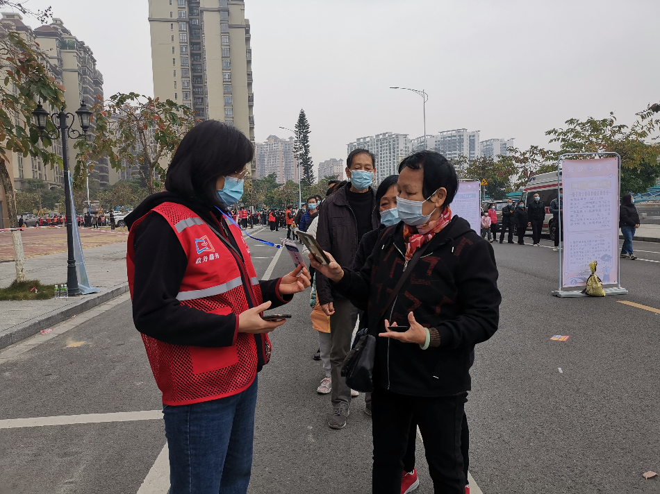 眾志成城戰(zhàn)疫情——市政數(shù)局疫情防控“黨員志愿服務(wù)隊”助力核酸篩查 由于近期中山市、珠海市相繼出現(xiàn)新冠肺炎陽性本土病例,為降低疫情傳播風(fēng)險,保障公共健康安全,開平市決定于1月15、16日主動在全市范圍內(nèi)開展大規(guī)模免費核酸篩查。根據(jù)疫情防控工作需要,市政務(wù)服務(wù)數(shù)據(jù)管理局迅速響應(yīng),成立疫情防控“黨員志愿服務(wù)隊”,充分發(fā)揮黨員先鋒模范作用,積極發(fā)動局機關(guān)、下屬單位、進駐窗口黨員、干部投身到核酸篩查志愿服務(wù)工作。 1月15日,由我局21名黨員干部組成的疫情防控“黨員志愿服務(wù)隊”按照市疫情防控指揮部的工作安排,第一時間到核酸采樣點協(xié)助開展核酸檢測工作。 在核酸檢測現(xiàn)場,志愿服務(wù)隊員們積極主動宣講防控知識、維護現(xiàn)場秩序、協(xié)助錄入信息、落實防控措施,大力弘揚了志愿服務(wù)精神,切實發(fā)揮了黨員干部先鋒模范作用。 一名黨員就是一面旗幟,我局黨員志愿者牢記使命、勇挑重擔(dān)、堅守一線,積極配合開展核酸檢測工作,以實際行動踐行“我為群眾辦實事”實踐活動,堅決筑牢疫情防控嚴密防線,為打贏疫情防控阻擊戰(zhàn)貢獻政數(shù)力量。