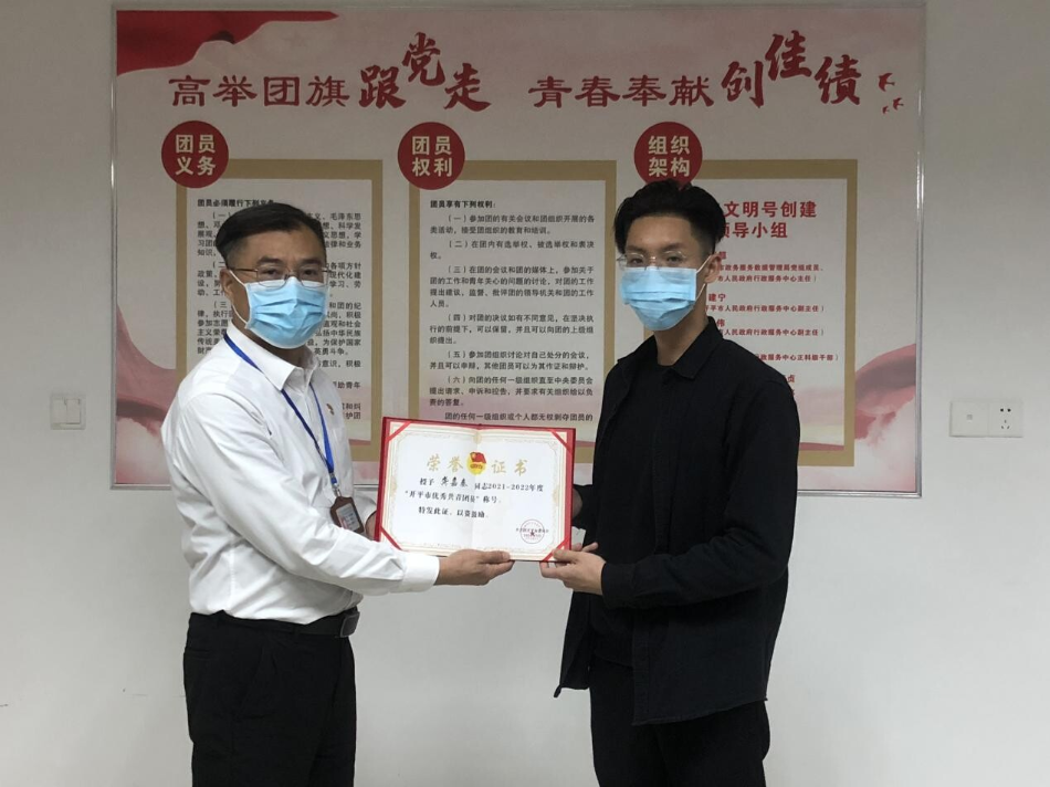 2022年4月2日,共青團(tuán)開平市第十五屆委員會第九次全體(擴(kuò)大)會議上,共青團(tuán)開平市委員會授予龔嘉秦同志為2021-2022年度“開平市優(yōu)秀共青團(tuán)員”榮譽(yù)稱號。 作為政務(wù)服務(wù)人的嘉秦同志時刻以優(yōu)秀共青團(tuán)員的標(biāo)準(zhǔn)嚴(yán)格要求自己,不忘初心,一直站穩(wěn)全心為民的工作立場,并在疫情防控期間懷揣志愿精神,踐行團(tuán)員擔(dān)當(dāng),為各級團(tuán)組織和廣大青少年做好表率。 對此殊榮,市行政服務(wù)中心的領(lǐng)導(dǎo)均向嘉秦同志表示了衷心的祝賀,同時希望廣大的團(tuán)員干部、團(tuán)員青年立足本職工作,主動對標(biāo)先進(jìn),積極展現(xiàn)當(dāng)代共青團(tuán)員的新風(fēng)貌,為我市共青團(tuán)工作的新發(fā)展再創(chuàng)佳績!