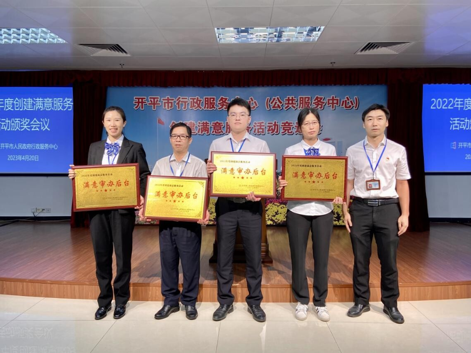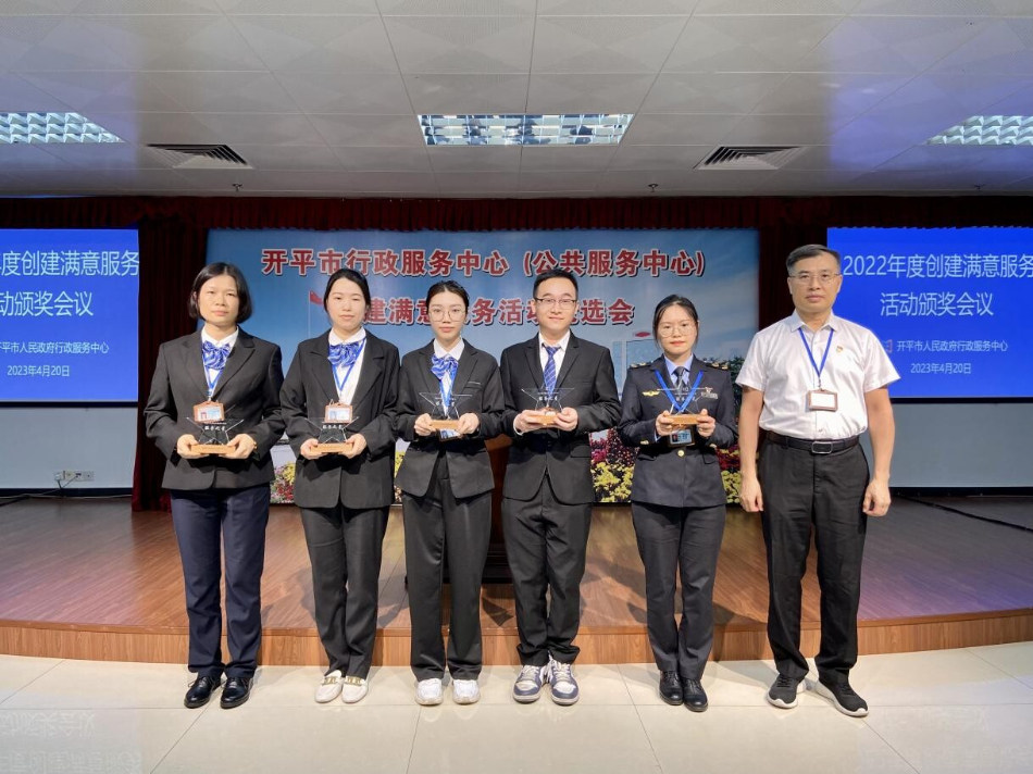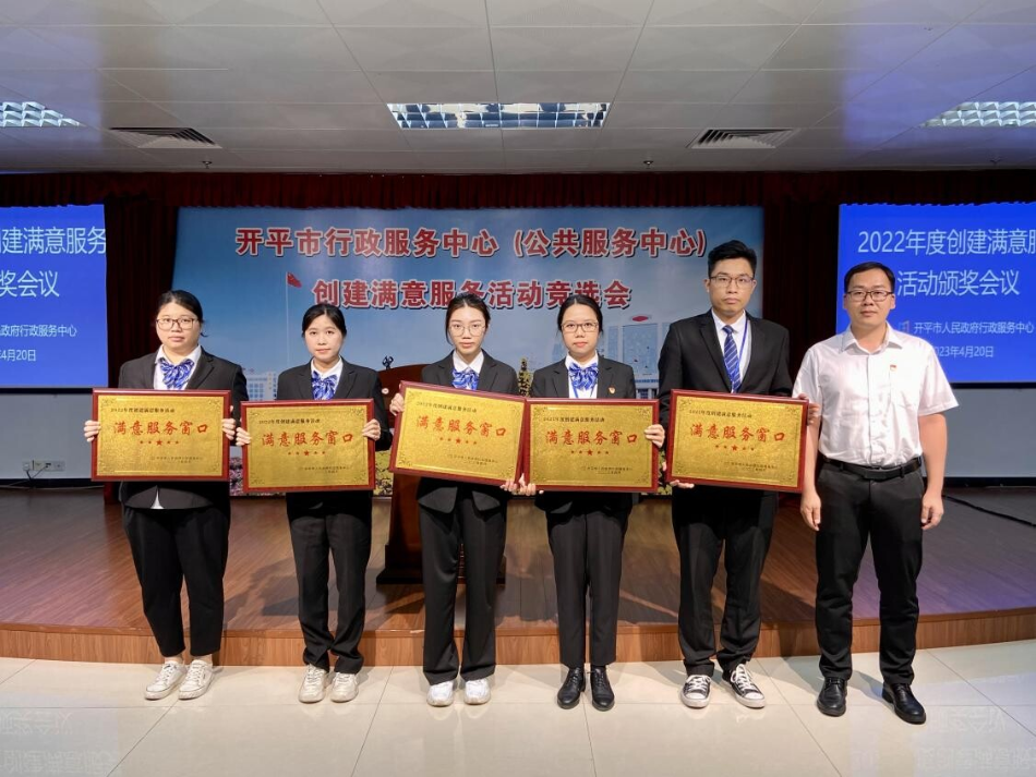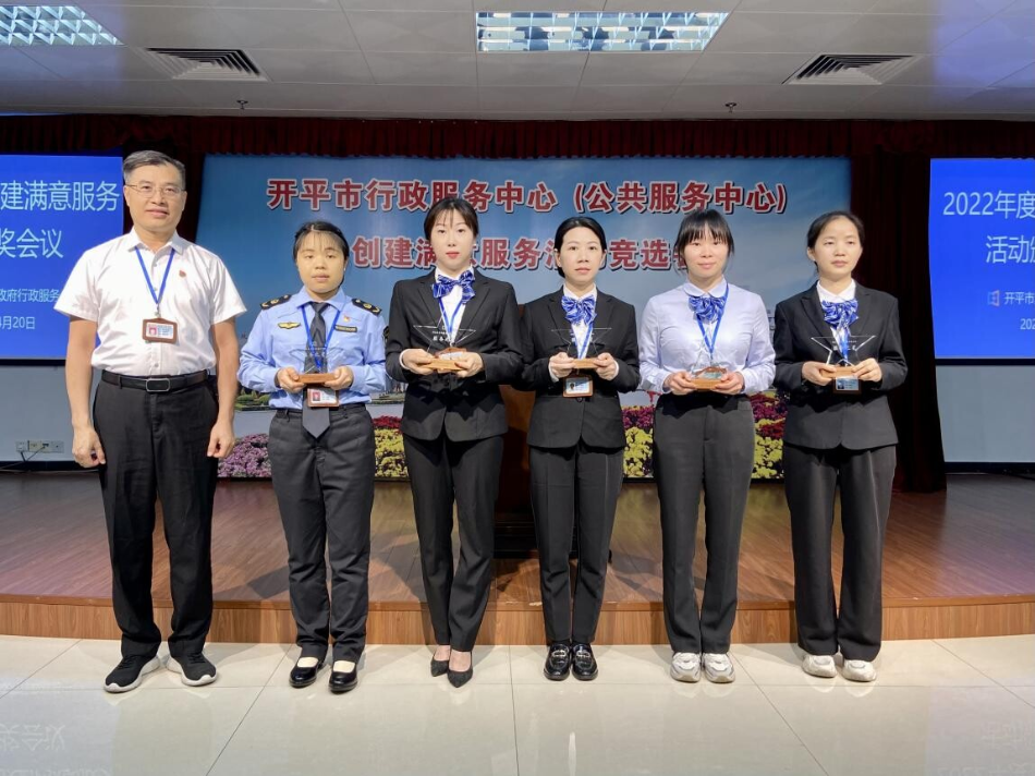 4月20日下午,開平市行政服務(wù)中心召開2022年度創(chuàng)建滿意服務(wù)活動(dòng)表彰大會(huì),市政務(wù)服務(wù)數(shù)據(jù)管理局主要領(lǐng)導(dǎo),行政服務(wù)中心全體職工以及中心服務(wù)窗口,審辦后臺(tái),服務(wù)之星代表參加了此次大會(huì)。 為加強(qiáng)服務(wù)窗口、審辦后臺(tái)、服務(wù)后勤管理,促進(jìn)機(jī)關(guān)作風(fēng)建設(shè),進(jìn)一步提升工作人員的政治素質(zhì)和業(yè)務(wù)能力,強(qiáng)化責(zé)任意識(shí)、服務(wù)意識(shí)、效率意識(shí)和創(chuàng)先爭(zhēng)優(yōu)意識(shí),市行政服務(wù)中心深入開展創(chuàng)建滿意服務(wù)活動(dòng),并評(píng)選出5個(gè)“滿意服務(wù)窗口”、4個(gè)“滿意審辦后臺(tái)”、1個(gè)“滿意服務(wù)后勤”以及10名“服務(wù)之星”。 市政數(shù)局黨組書記、局長龔偉強(qiáng)同志為5個(gè)“滿意服務(wù)窗口”的獲獎(jiǎng)代表頒發(fā)獎(jiǎng)牌 市政數(shù)局黨組成員、行政服務(wù)中心主任顏劍超同志為4個(gè)“滿意審辦后臺(tái)”獲獎(jiǎng)代表頒發(fā)獎(jiǎng)牌 市政數(shù)局副局長武勝利同志為“滿意服務(wù)后勤”代表頒發(fā)獎(jiǎng)牌 市行政服務(wù)中心副主任周建寧同志為10名“服務(wù)之星”獲獎(jiǎng)?wù)哳C發(fā)獎(jiǎng)杯 通過此次評(píng)選活動(dòng),全體職工將以先進(jìn)為榜樣,堅(jiān)持以習(xí)近平新時(shí)代中國特色社會(huì)主義思想為指導(dǎo),不忘初心,牢記使命,凝心聚力、接續(xù)奮斗,爭(zhēng)創(chuàng)廣東省行政服務(wù)標(biāo)桿大廳,在全面建設(shè)社會(huì)主義現(xiàn)代化國家新征程中展現(xiàn)我們政務(wù)服務(wù)的新?lián)?dāng)、新作為。