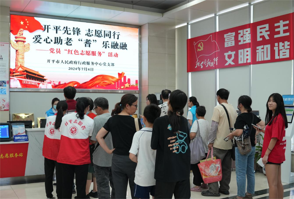 ‘耆’樂(lè)融融”為主題,組織開(kāi)展黨員“紅色志愿服務(wù)”活動(dòng)。 本次活動(dòng)在開(kāi)平市行政服務(wù)大廳一樓進(jìn)行,為了活動(dòng)的有序開(kāi)展,黨員志愿者們?cè)缭绾蛟谝慌?,引?dǎo)群眾有序排隊(duì),并為長(zhǎng)者們提供咨詢、預(yù)約、引路等志愿服務(wù)。 活動(dòng)現(xiàn)場(chǎng),黨員志愿者們聚焦老年人的政務(wù)服務(wù)需求,向長(zhǎng)者們講解網(wǎng)上預(yù)約的操作流程與變化,對(duì)長(zhǎng)者的問(wèn)題一一解答,并收集他們的意見(jiàn),達(dá)到把服務(wù)送到長(zhǎng)者心坎里的效果。 此次活動(dòng),黨員們以志愿服務(wù)踐行初心使命,其亮明黨員身份、彰顯先鋒風(fēng)采的實(shí)際行動(dòng),讓長(zhǎng)者們感受到老有所依、老有所安的溫暖,營(yíng)造了“耆”樂(lè)融融的氛圍。活動(dòng)得到了良好的反響,也鼓舞著黨員們持續(xù)以自己的行動(dòng)詮釋黨員擔(dān)當(dāng),全力以赴推動(dòng)全社會(huì)形成愛(ài)心助老的良好風(fēng)尚。