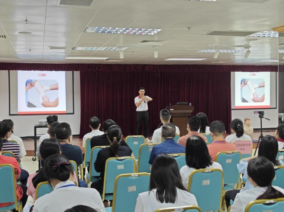 防范始于行”為主題的急救知識培訓。課上進行了止血、包扎、溺水、家庭急救等理論知識講解以及進行了現(xiàn)場實操演示。 隨后,開平市特殊教育學校余揚君老師通過現(xiàn)場教學、實操練習、現(xiàn)場抽查等方式,重點圍繞政務(wù)服務(wù)類等方面用語開展手語教學,由淺入深,幫助學員掌握日常政務(wù)服務(wù)手語交流技巧。 通過此次培訓,學員不僅提升了應(yīng)對突發(fā)意外傷害的緊急救援能力,更掌握了與聽障人士交流的基本手語,提升自身手語溝通能力。接下來,市行政服務(wù)中心將以創(chuàng)建“廣東省政務(wù)服務(wù)標桿大廳”為目標,打造適老化、適殘化便民服務(wù)大廳,全力配合我市文明城市創(chuàng)建工作,讓政務(wù)服務(wù)更有溫度和深度。