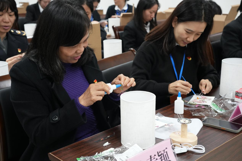 雅韻流光綻芳華”美勞沙龍--黨建帶工青婦團(tuán)建活動(dòng)。 活動(dòng)首先由市政務(wù)服務(wù)和數(shù)據(jù)管理局婦女委員會(huì)主任陳春穎同志帶領(lǐng)深入學(xué)習(xí)貫徹省婦女第十四次代表大會(huì)精神。通過(guò)學(xué)習(xí)大會(huì)精神,進(jìn)一步凝聚了全體女干部職工的力量,激發(fā)工作熱情,充分發(fā)揮“她”力量。 接著,由市行政服務(wù)中心導(dǎo)辦窗口組長(zhǎng)梁柳開(kāi)進(jìn)行“強(qiáng)國(guó)復(fù)興有我”百姓故事分享。全體女干部職工對(duì)巾幗榜樣產(chǎn)生了崇高敬意,紛紛表示要向先進(jìn)學(xué)習(xí),積極提升業(yè)務(wù)素質(zhì)和服務(wù)水平,帶著真心和感情服務(wù)群眾,讓群眾感受到政務(wù)服務(wù)的溫度。 最后,開(kāi)展了壓花臺(tái)燈美勞沙龍活動(dòng)。女干部職充分發(fā)揮想象和創(chuàng)造力,細(xì)致地將花朵、莖葉進(jìn)行裁剪、構(gòu)圖擺放、修正,然后將花材粘貼、固定,并為臺(tái)燈貼膜,經(jīng)過(guò)一番精心點(diǎn)綴后,一盞盞繁花盛開(kāi)的燈展現(xiàn)眼前。女干部職工臉上都洋溢著愉快的笑容,在溫馨氛圍的浸染中,享受著壓花藝術(shù)創(chuàng)作的獨(dú)特魅力。 此次活動(dòng)進(jìn)一步深化黨建引領(lǐng),提升組織凝聚力,營(yíng)造了關(guān)心關(guān)愛(ài)女職工的良好的節(jié)日氛圍,有利于引導(dǎo)女干部職工同心同德、踔厲奮發(fā)、勇毅前行,為奮力推動(dòng)我市經(jīng)濟(jì)社會(huì)高質(zhì)量發(fā)展實(shí)現(xiàn)新突破貢獻(xiàn)巾幗力量。