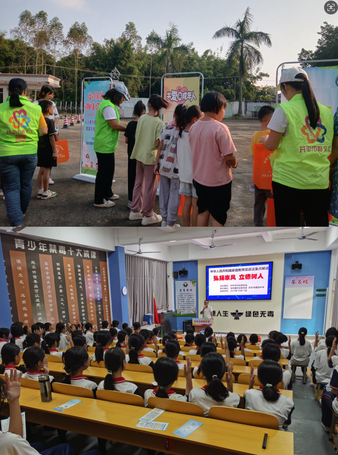 活動(dòng)中,馬岡鎮(zhèn)、村兩級(jí)婦聯(lián)執(zhí)委和巾幗志愿者重點(diǎn)圍繞關(guān)愛未成年人、家風(fēng)家訓(xùn)家教、反對(duì)家暴等主題,通過開展專題講座、詳細(xì)解讀法治宣傳海報(bào)、發(fā)放普法宣傳資料等方式,積極向群眾、學(xué)生普及《家庭教育促進(jìn)法》《中華人民共和國預(yù)防未成年人犯罪法》《中華人民共和國未成年人保護(hù)法》等法律法規(guī),呼吁大家共同建設(shè)維護(hù)婦女兒童權(quán)益、關(guān)愛未成年人成長的良好家庭環(huán)境和社會(huì)環(huán)境。 進(jìn)家庭 進(jìn)學(xué)校 進(jìn)村(社區(qū)) 進(jìn)企業(yè) 活動(dòng)過程中,工作人員還積極向大家傳播禁毒、防艾、反邪、防拐、反詐等知識(shí),累計(jì)發(fā)放法治宣傳單張和小袋子3000余份。 接下來,馬岡鎮(zhèn)婦聯(lián)將持續(xù)深化“巾幗普法鄉(xiāng)村行”活動(dòng)成果,整合力量深入開展普法宣傳,用心用情關(guān)愛服務(wù)好轄區(qū)婦女兒童,引導(dǎo)廣大群眾尊法學(xué)法守法用法,為法治馬岡建設(shè)、為鄉(xiāng)村全面振興貢獻(xiàn)巾幗力量。為深入學(xué)習(xí)貫徹習(xí)近平法治思想,深化法律宣傳教育,進(jìn)一步增強(qiáng)群眾法治意識(shí)和依法維權(quán)能力,近日,開平市婦聯(lián)與馬岡鎮(zhèn)婦聯(lián)聯(lián)合開展“巾幗普法鄉(xiāng)村行”主題普法宣傳活動(dòng),以“四進(jìn)”(進(jìn)家庭、進(jìn)學(xué)校、進(jìn)村(社區(qū))、進(jìn)企業(yè))方式,把法律知識(shí)和維權(quán)服務(wù)送到廣大群眾身邊。本次活動(dòng)重點(diǎn)開展《家庭教育促進(jìn)法》《中華人民共和國未成年人保護(hù)法》《中華人民共和國預(yù)防未成年人犯罪法》等法律宣傳,在全社會(huì)推進(jìn)營造重視家庭、尊重婦女、關(guān)愛兒童的良好氛圍,弘揚(yáng)良好家教家風(fēng),促進(jìn)法治鄉(xiāng)村建設(shè),助力鄉(xiāng)村全面振興。