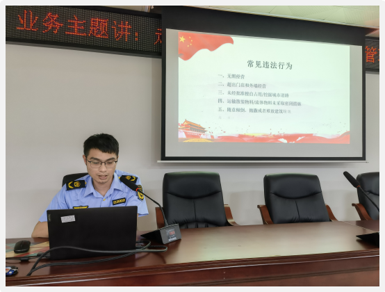 街道執(zhí)法辦李志杰學(xué)員結(jié)合自身執(zhí)法工作實際,以圖、表、文字相結(jié)合的方式向?qū)W員們詳細(xì)介紹行政處罰依據(jù)、裁量標(biāo)準(zhǔn)、證據(jù)采集、執(zhí)法文書的規(guī)范化制作、案件辦理流程等內(nèi)容,并分享文明規(guī)范執(zhí)法的相關(guān)經(jīng)驗及真實案例。