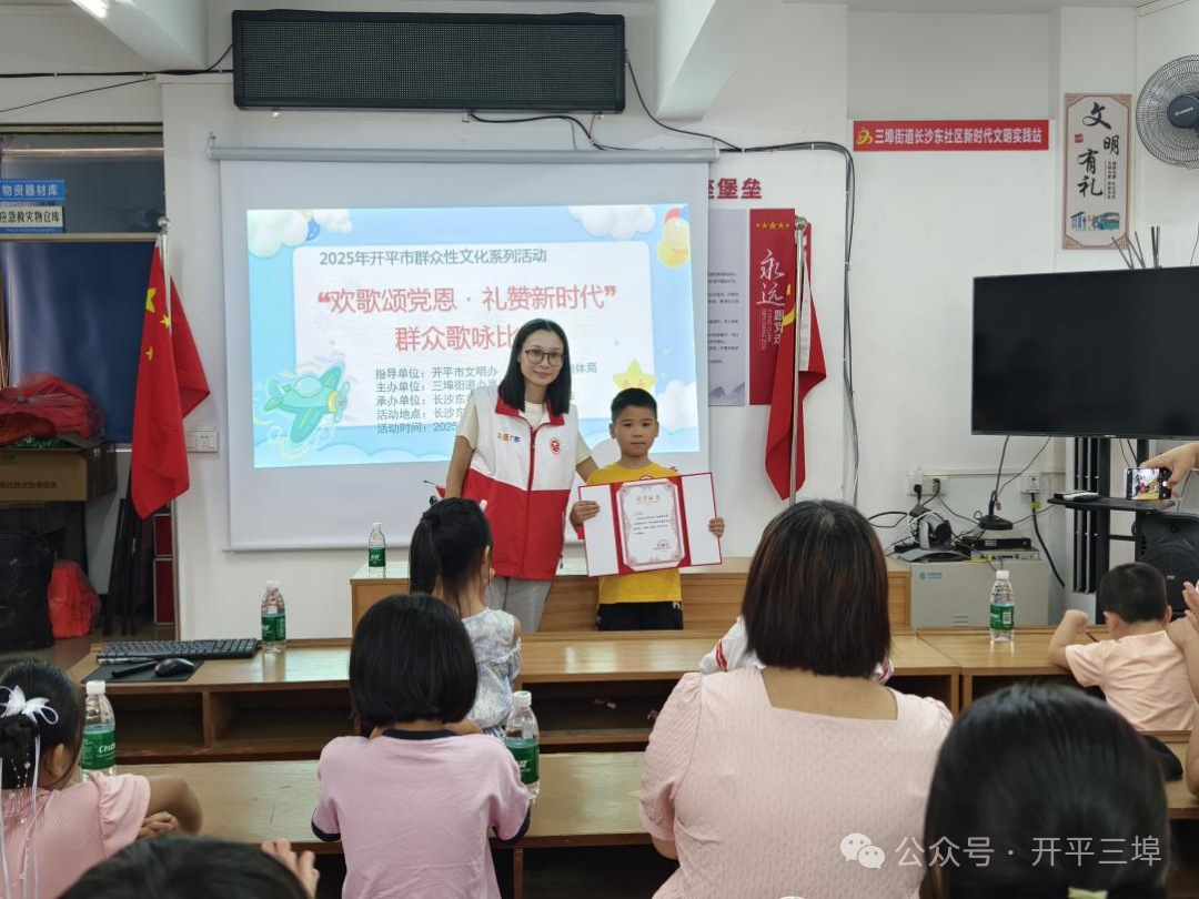 為豐富兒童的課余生活,培養(yǎng)藝術(shù)素養(yǎng),展現(xiàn)新時代少年兒童的精神風(fēng)貌,8月21日,三埠街道辦事處、長沙東社區(qū)居委會聯(lián)合舉辦2025年開平市群眾性文化系列活動“歡歌頌黨恩?禮贊新時代”群眾歌詠比賽。來自各年齡段共5名小選手同臺競技,用純凈的歌聲編織了一場童趣盎然的音樂盛宴。