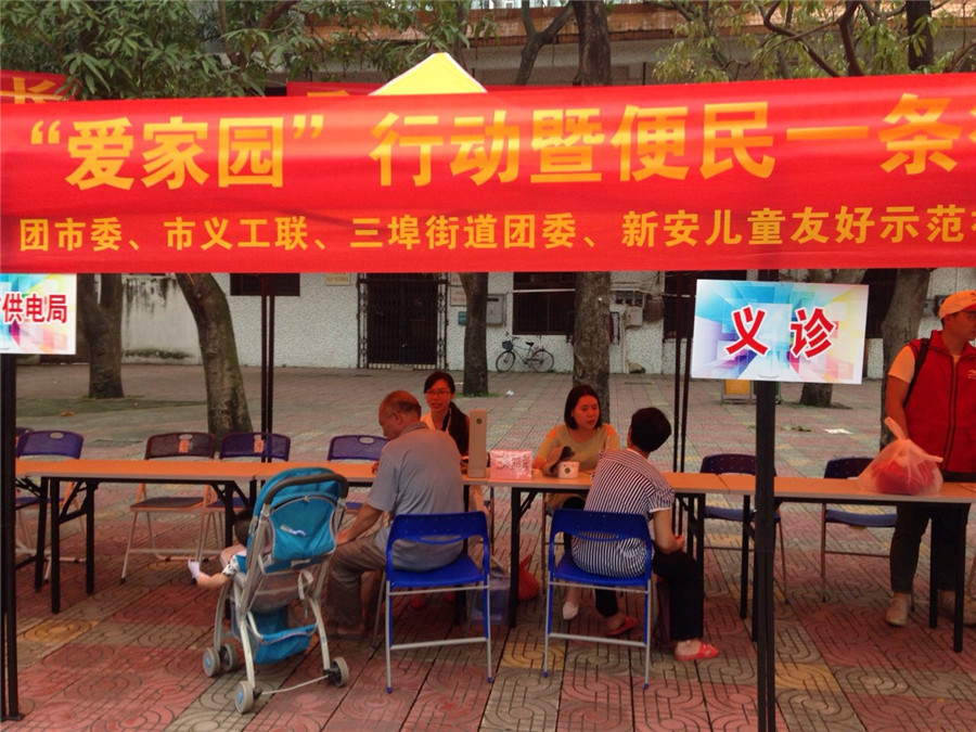2016年4月16日上午,團(tuán)市委、市義工聯(lián)、三埠街道團(tuán)委及有關(guān)部門和新安社區(qū)義工服務(wù)站與流行密碼、三埠衛(wèi)生院義工服務(wù)隊(duì)聯(lián)合在三埠新昌公園開展了義剪、義診及清潔衛(wèi)生環(huán)境建設(shè)美好家園義工活動(dòng),本次活動(dòng)吸引了附近許多群眾參與。