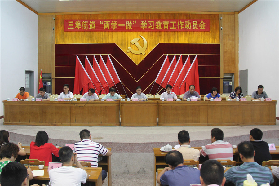 為認(rèn)真貫徹落實上級關(guān)于“兩學(xué)一做”工作部署,5月9日下午,三埠街道召開 “兩學(xué)一做”學(xué)習(xí)教育工作動員會。街道全體黨政班子成員、機關(guān)副股級以上黨員干部、各村(社區(qū))黨組織書記和組織委員、基層站所以及“兩新”黨組織書記共140多人參加了會議。會議由街道黨工委副書記麥振廣主持。
