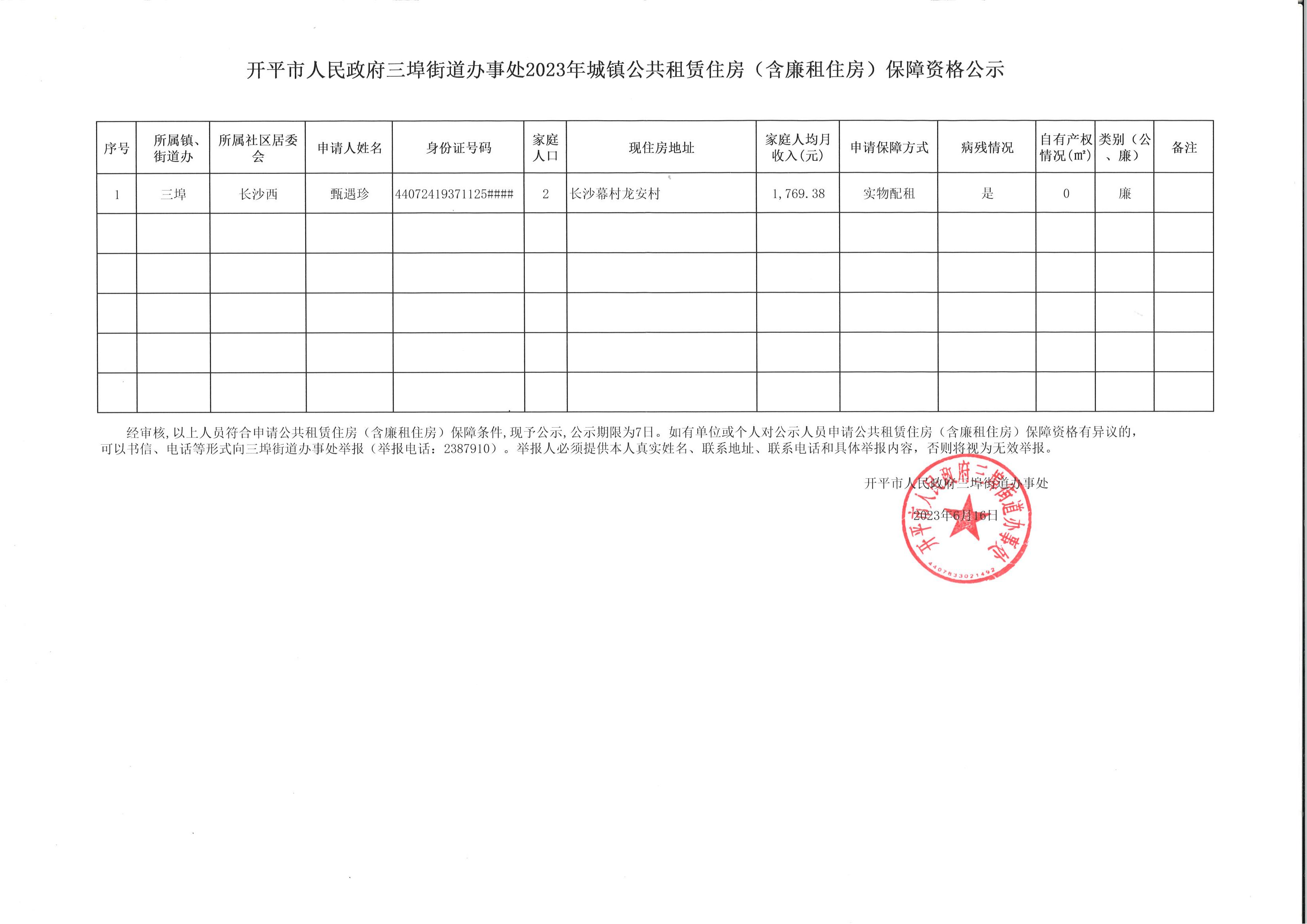 開平市人民政府三埠街道辦事處2023年城鎮(zhèn)公共租賃住房(含廉租住房)保障資格公示