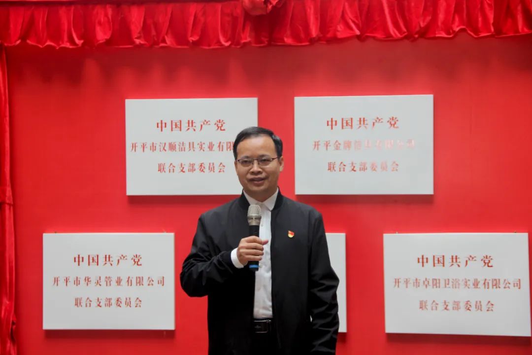 李榮杰對5個聯(lián)合黨支部的成立表示熱烈的祝賀并提出三點希望。一是希望水口鎮(zhèn)黨委繼續(xù)扮演好“指導(dǎo)員”的角色。強化黨組織書記、黨員、黨建指導(dǎo)員“三支隊伍”建設(shè),持續(xù)推進“兩新”組織“兩個覆蓋”;發(fā)揮水暖衛(wèi)浴產(chǎn)業(yè)鏈黨委政治引領(lǐng)、教育引導(dǎo)、資源統(tǒng)籌和暖企惠民的作用,推動產(chǎn)業(yè)集群不斷做大做強。二是希望各聯(lián)合黨支部建好陣地,抓好黨支部標準化、規(guī)范化建設(shè)。抓好黨建促進企業(yè)發(fā)展,常態(tài)化開展車間微黨課活動,用習(xí)近平新時代中國特色社會主義思想凝心聚力,真正把黨的政治優(yōu)勢、組織優(yōu)勢轉(zhuǎn)化為企業(yè)源源不斷的發(fā)展動力。三是希望各企業(yè)按照市委今年“狠抓落實年”的工作要求,聚焦高質(zhì)量黨建推動高質(zhì)量發(fā)展的主題,為開平市創(chuàng)建省高質(zhì)量發(fā)展示范縣貢獻水口力量。