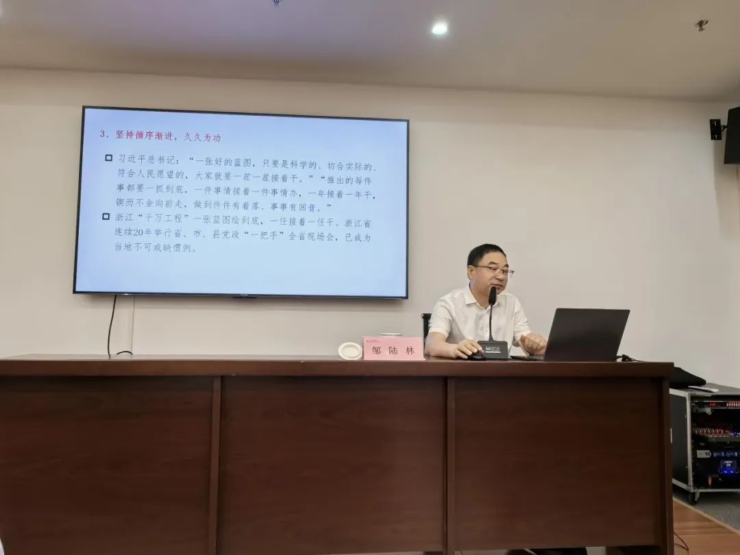 本次培訓班邀請了江門市委黨校鄒陸林教授作《深入實施“百千萬工程”建設宜居宜業(yè)和美鄉(xiāng)村》專題授課。鄒教授結合浙江“千萬工程”優(yōu)秀發(fā)展經驗,提出建設宜居宜業(yè)和美鄉(xiāng)村重在觀念,堅持因地制宜,發(fā)掘鄉(xiāng)村特色,進行科學規(guī)劃,創(chuàng)新原生態(tài)村居風貌和現(xiàn)代元素結合方式,并就江門特色農產品和特色風貌提出發(fā)展想法,激勵干部多思、多想、多干,走出屬于自己的高質量發(fā)展道路。