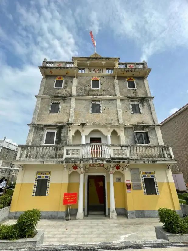 松山炮樓即“新鶴人民抗日游擊大隊部舊址”,位于新會區(qū)司前鎮(zhèn)白廟村,建于民國初期,炮樓坐西向東,混凝土結(jié)構(gòu),占地面積55.8平方米,通高13米,樓身三層,每層四周均設(shè)鐵窗及槍眼,墻身彈痕累累。松山炮樓是縣級文物保護(hù)單位,是新會區(qū)愛國主義教育基地之一。