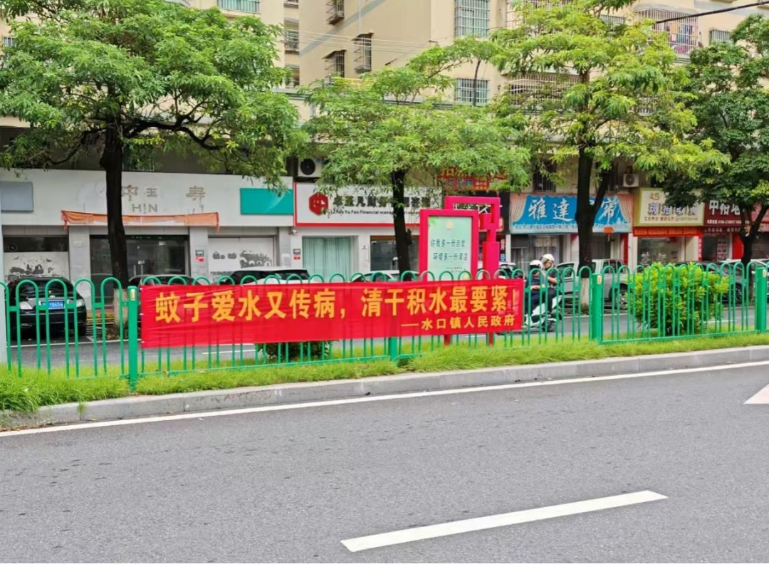 “兩熱”防控不是單打獨(dú)斗,需要廣大居民群眾的共同參與。水口鎮(zhèn)采取“線上+線下”“視覺+聽覺”的立體宣傳模式,讓防控防線越織越密。