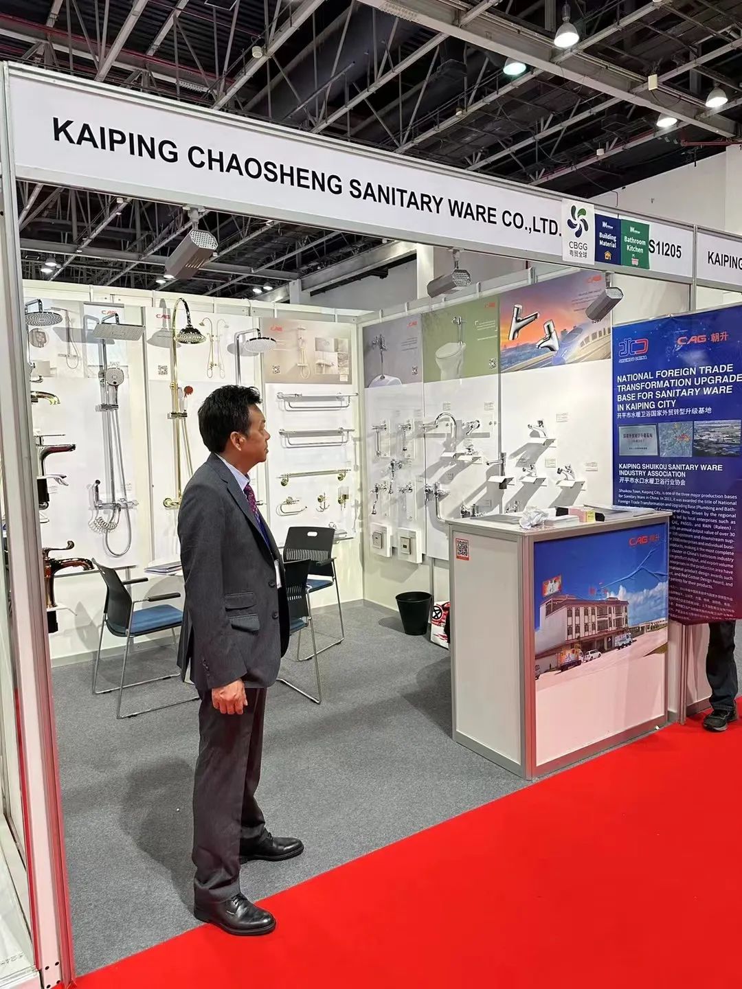 開平市水口水暖衛(wèi)浴行業(yè)協(xié)會會長馮松展親自赴現(xiàn)場為會員企業(yè)鼓勁打氣,他表示,本次集體出海參展,旨在借助迪拜中東市場的影響力,提升開平衛(wèi)浴品牌的國際知名度,進(jìn)一步拓展海外市場。