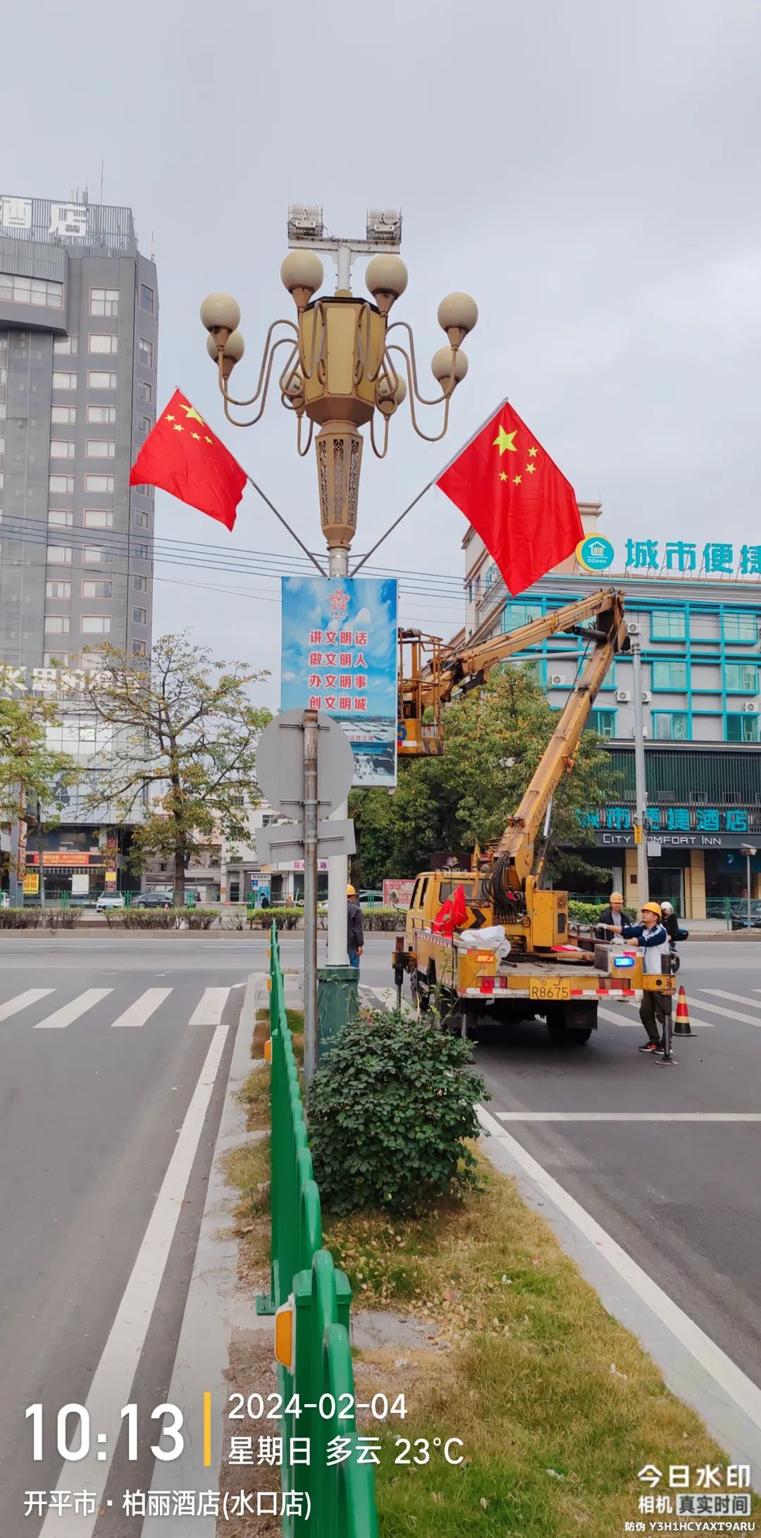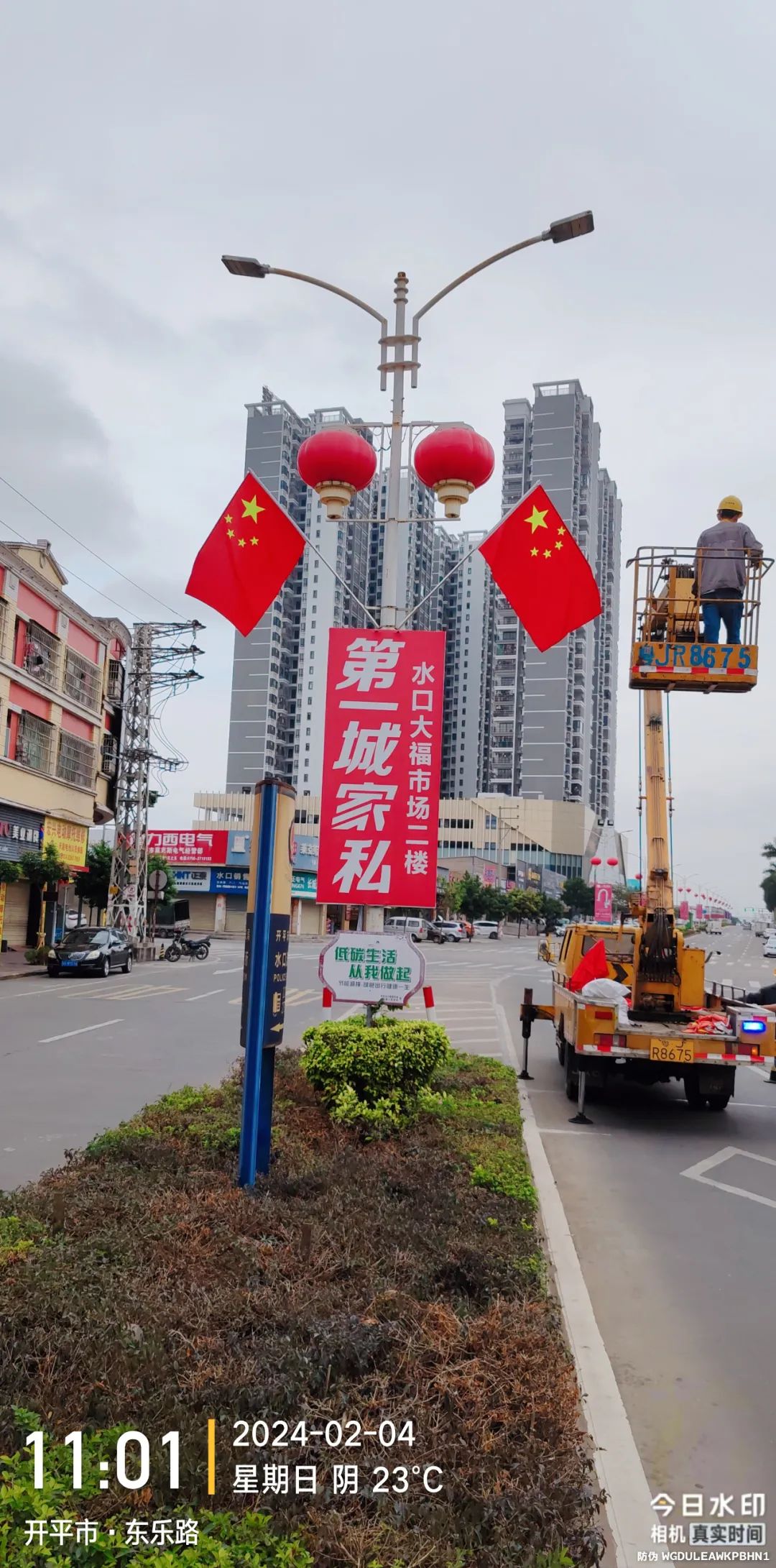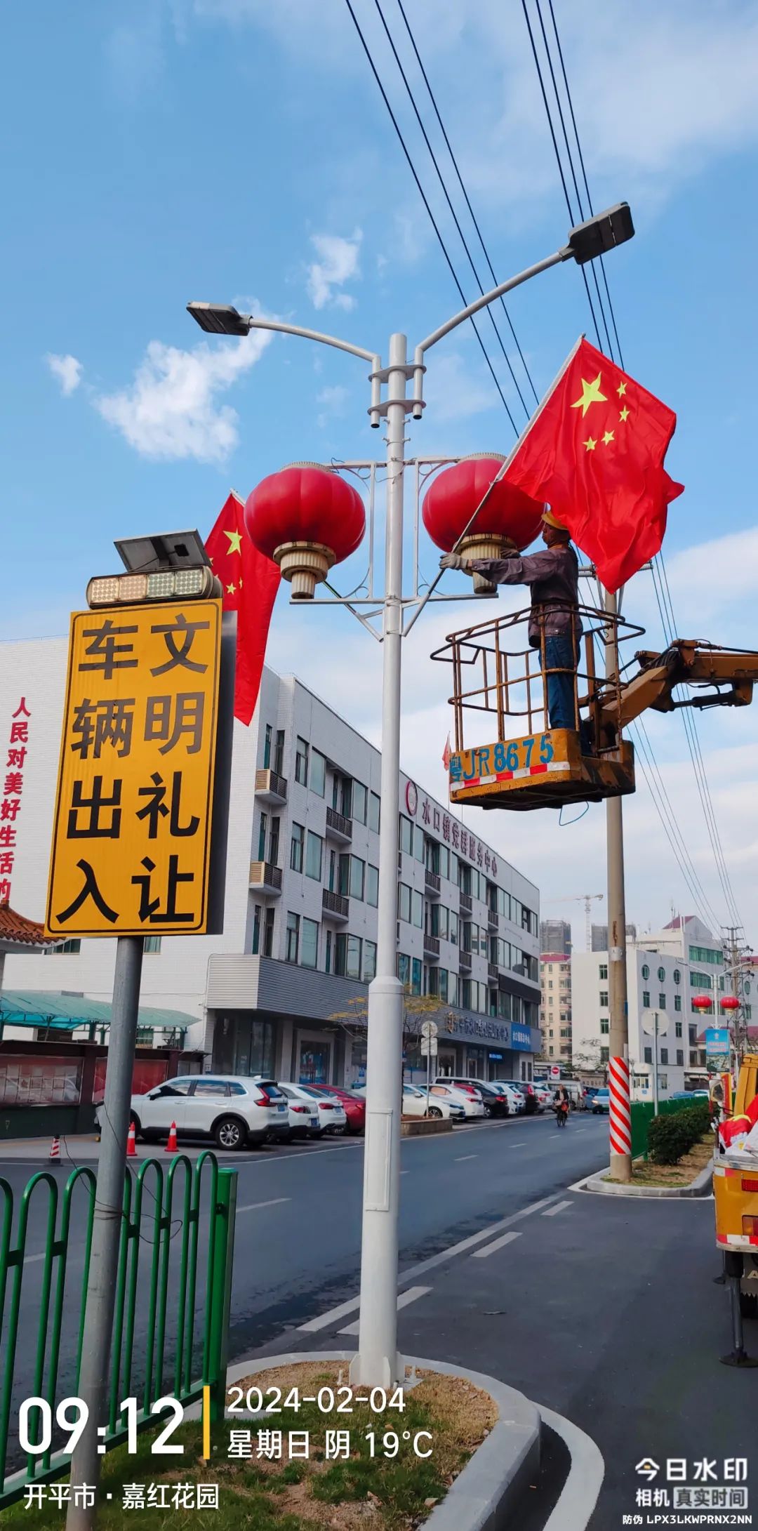 在鎮(zhèn)區(qū)主干道路路燈桿懸掛嶄新鮮艷的國旗,一處處醒目的“中國紅”,在成為靚麗風(fēng)景線的同時,也傳遞著濃濃的家國情懷,帶來了滿滿的新春儀式感。
