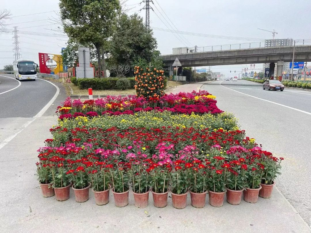 在高速出入口、水口公園等重要節(jié)點處,布置了各式各樣的時令花卉和新春元素裝飾,邀請市民游客共赴美景。