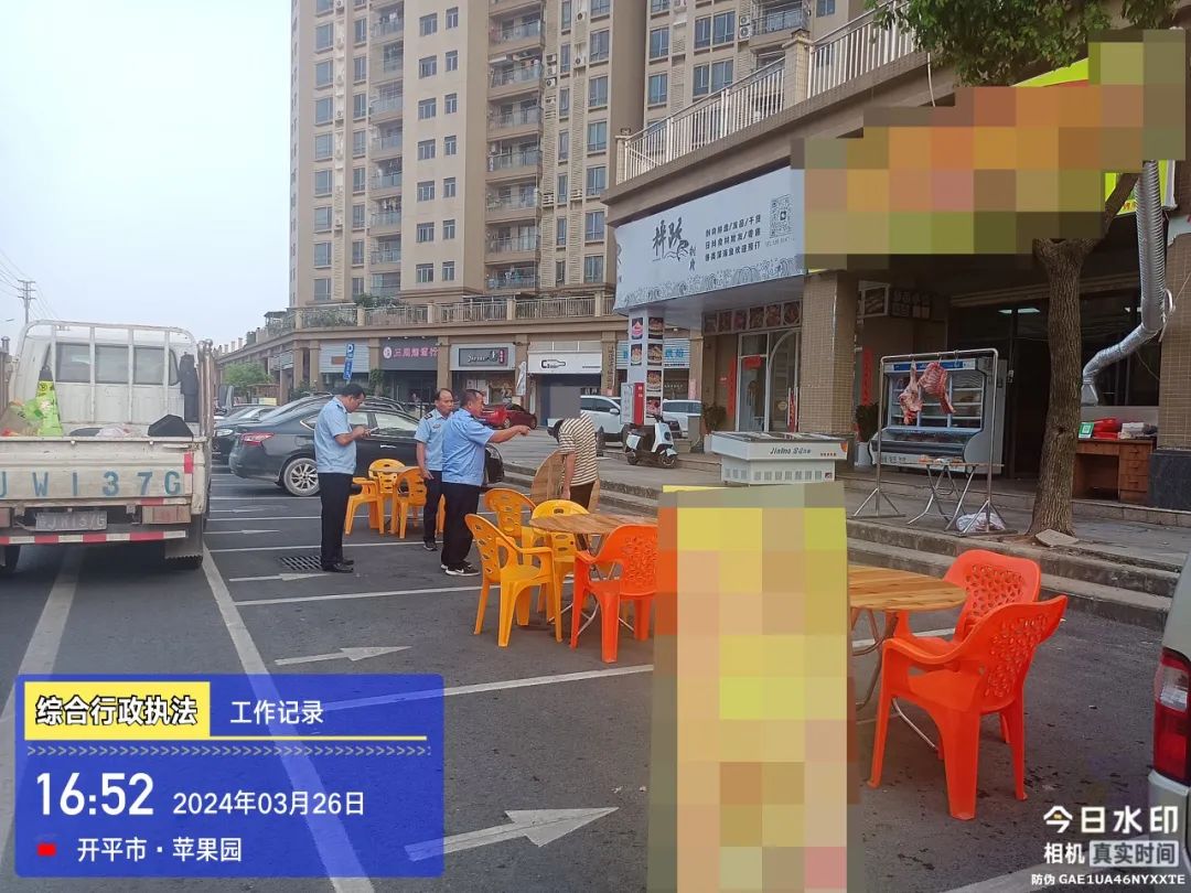 3月11日至3月31日,執(zhí)法辦共整治跨門店經(jīng)營(yíng)商鋪153家,勸離占道攤販約120個(gè),暫扣桌椅10張、錐形筒6個(gè)、廣告橫幅1條、廣告牌2個(gè)、蔬菜10斤,清理占道雜物約20噸。接12345工單事項(xiàng)23單,已處理21宗,2宗仍在辦理中。