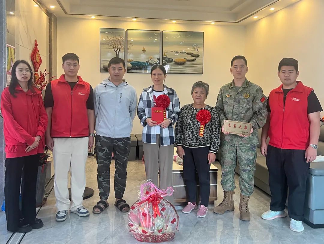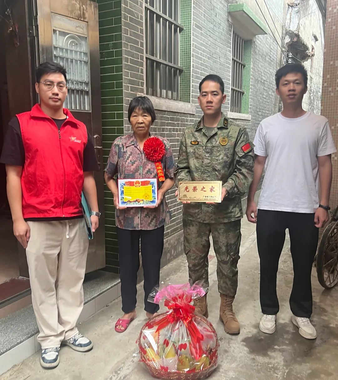 慰問(wèn)組深入走訪鄺業(yè)成、譚文焯、郭沛杰、蘇鉅祥4名優(yōu)秀士兵家庭,將喜報(bào)和慰問(wèn)品送至家屬手中,向軍屬們表示熱烈的祝賀,并對(duì)其家屬為國(guó)家、部隊(duì)培養(yǎng)輸送的人才以及為家鄉(xiāng)贏得的榮譽(yù)表示感謝。同時(shí),慰問(wèn)組與軍屬們展開(kāi)親切交談,詳細(xì)了解軍屬的工作和生活情況,宣講優(yōu)撫政策,并希望家屬能繼續(xù)做好軍人的堅(jiān)強(qiáng)后盾,支持孩子安心服役,勉勵(lì)孩子扎根軍營(yíng)、再立新功。