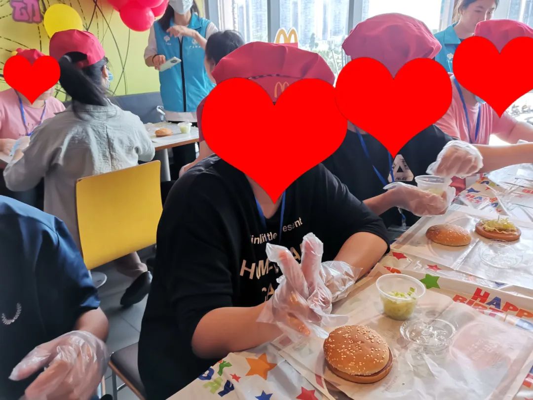 隨后,學員們來到麥當勞快餐店,學員們在店員的帶領下,學習如何制作漢堡包。學員們都表現(xiàn)出了極高的耐心和毅力,他們相互幫助、相互分享,共同完成了漢堡包DIY這項任務。