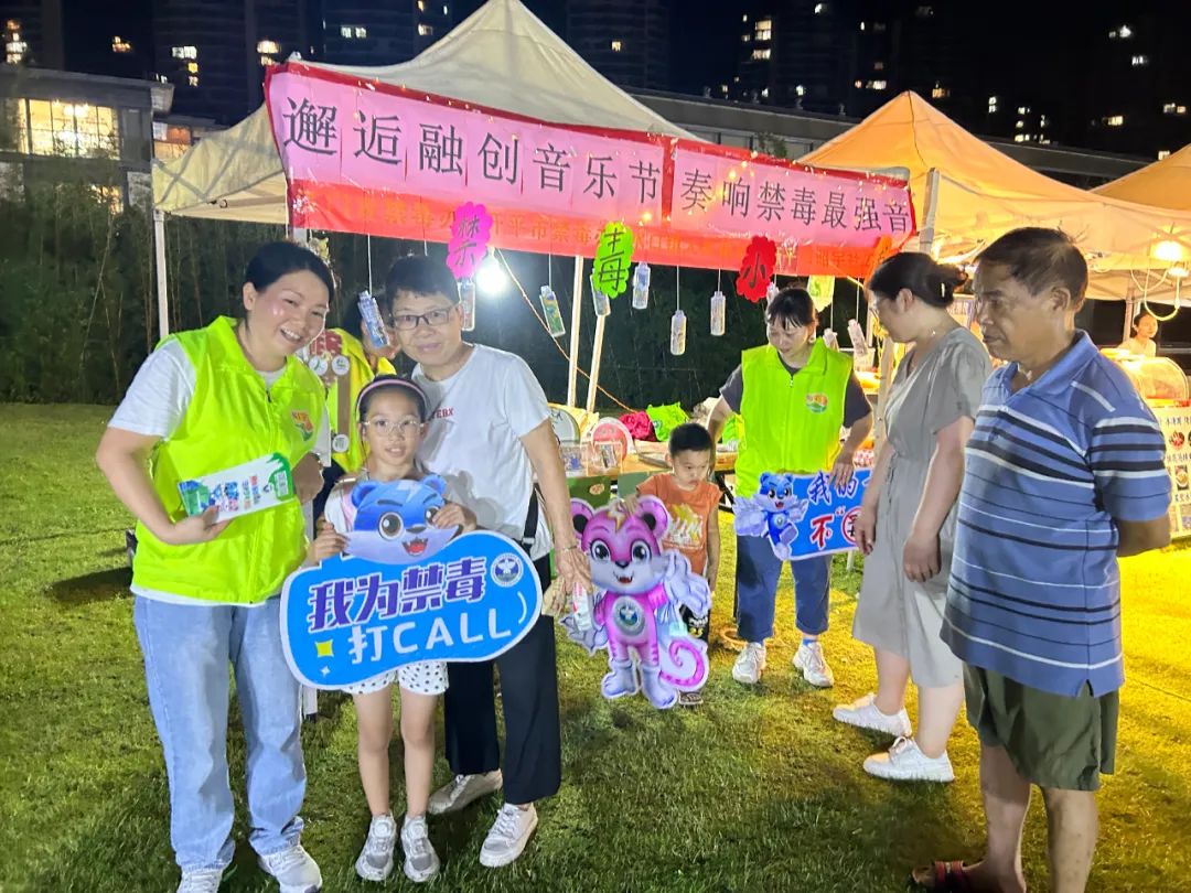 活動(dòng)現(xiàn)場(chǎng),熱鬧非凡,音樂(lè)會(huì)結(jié)合時(shí)下年輕人喜愛(ài)的潮流元素,通過(guò)小丑表演、魔術(shù)表演、舞蹈表演、樂(lè)隊(duì)演唱、美食攤位、游樂(lè)設(shè)施等形式,吸引了眾多群眾前來(lái)觀看。禁毒社工在現(xiàn)場(chǎng)擺設(shè)攤位,重點(diǎn)圍繞“防范青少年藥物濫用”主題,圍繞毒品嘗試、已列管的右美沙芬等新型成癮物質(zhì)的濫用危害和預(yù)防等方面禁毒知識(shí),進(jìn)行了生動(dòng)、具體、翔實(shí)的普及講解,并發(fā)放了禁毒宣傳資料和宣傳品。來(lái)往市民群眾踴躍參與學(xué)習(xí)禁毒知識(shí),現(xiàn)場(chǎng)互動(dòng)氛圍活潑熱烈。