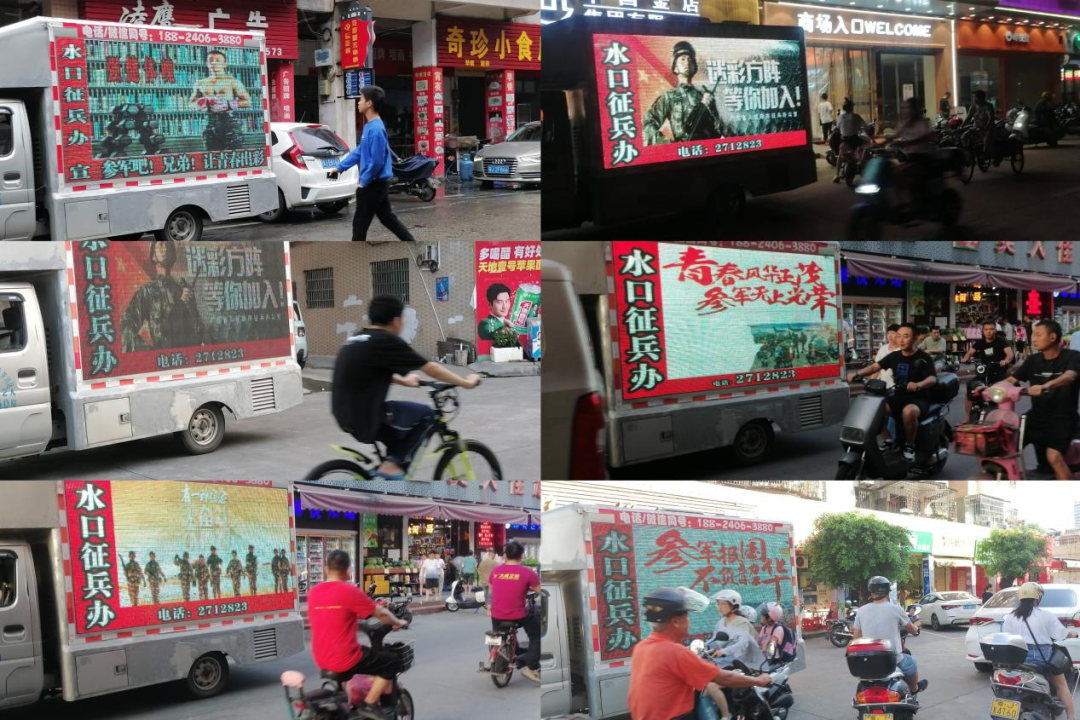 二是充分利用超市、商業(yè)街等點(diǎn)位人流量大、位置顯著的優(yōu)勢,布置征兵宣傳車分階段開展巡邏式宣傳,同時(shí)懸掛征兵宣傳橫幅,通過車載廣播和醒目的宣傳標(biāo)語,向過往群眾傳遞著征兵信息,大力營造濃厚的宣傳氛圍。