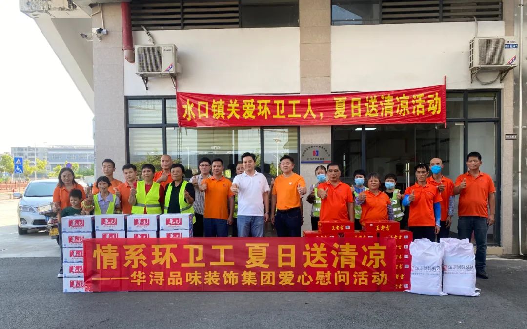 為進(jìn)一步做好防暑降溫工作,表達(dá)對(duì)環(huán)衛(wèi)工人的敬意與關(guān)愛(ài),8月5日,水口鎮(zhèn)聯(lián)合華潯品味裝飾集團(tuán)共同開(kāi)展“情系環(huán)衛(wèi)工,夏日送清涼”愛(ài)心慰問(wèn)活動(dòng),向城市“美容師”——環(huán)衛(wèi)工人向奮戰(zhàn)一線的環(huán)衛(wèi)工人送上真誠(chéng)的祝福和防暑慰問(wèn)品。水口鎮(zhèn)黨委書記司徒錦泉參加慰問(wèn)活動(dòng)。