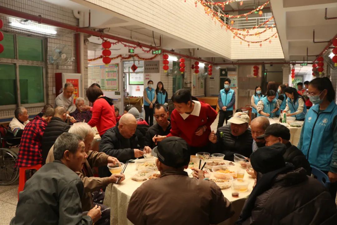 就餐過程中,工作人員貼心地為老年人們添菜、盛湯,并為行動不便老人送餐,陪他們聊天,相互分享著生活趣事,回憶著過去一年的溫暖瞬間,現(xiàn)場氛圍溫馨又熱鬧。