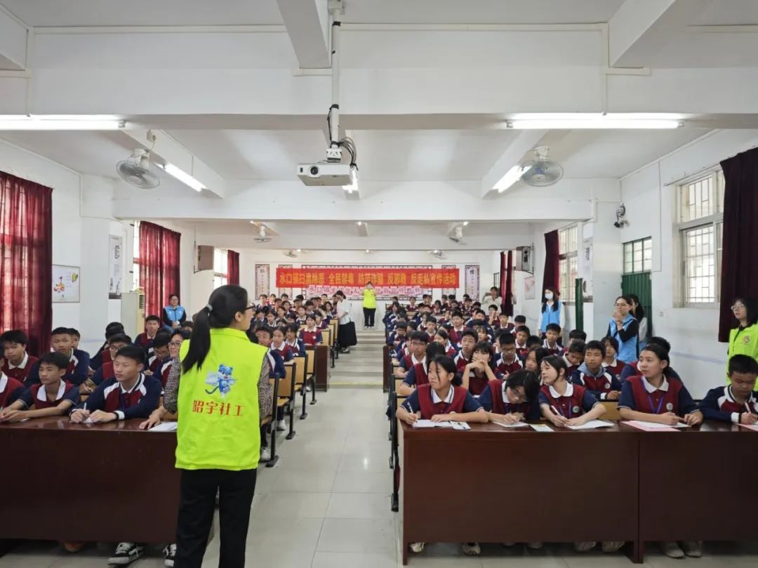 禁毒社工以何為毒品為開(kāi)端,通過(guò)簡(jiǎn)潔易懂的語(yǔ)言和生動(dòng)形象的展板,結(jié)合真實(shí)案例,向同學(xué)們深入剖析了毒品對(duì)青少年身心健康造成的嚴(yán)重?fù)p害,介紹了毒品的定義、常見(jiàn)和新型毒品的種類及其危害,以及通過(guò)正確途徑檢舉揭發(fā)涉毒違法犯罪行為,告誡同學(xué)們要時(shí)刻保持警惕,珍惜生命,堅(jiān)決遠(yuǎn)離毒品,樹(shù)立健康向上的世界觀、人生觀和價(jià)值觀,筑牢抵御毒品的思想防線。
