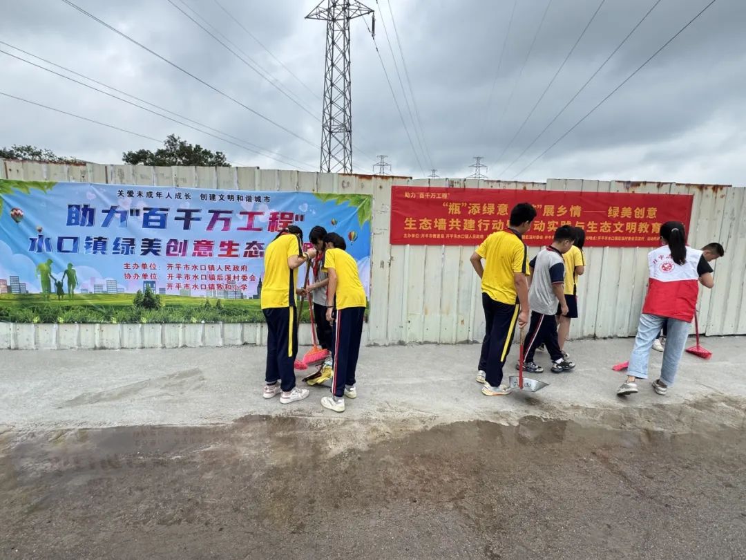 為深入推進(jìn)“百縣千鎮(zhèn)萬(wàn)村高質(zhì)量發(fā)展工程”,營(yíng)造整潔、有序、文明的農(nóng)村人居環(huán)境,5月19日,水口鎮(zhèn)聯(lián)合后溪村委會(huì)、致和小學(xué)開(kāi)展了綠美創(chuàng)意生態(tài)墻共建行動(dòng)暨勞動(dòng)實(shí)踐與生態(tài)文明教育活動(dòng),引導(dǎo)師生充分利用身邊閑置廢棄物品轉(zhuǎn)變?yōu)榫朗止に嚻?,掀起一?chǎng)創(chuàng)意手作與環(huán)保守護(hù)交織的綠色風(fēng)暴。水口鎮(zhèn)副鎮(zhèn)長(zhǎng)歐陽(yáng)偉業(yè)、水口鎮(zhèn)人大副主席馮惠清參加活動(dòng)。