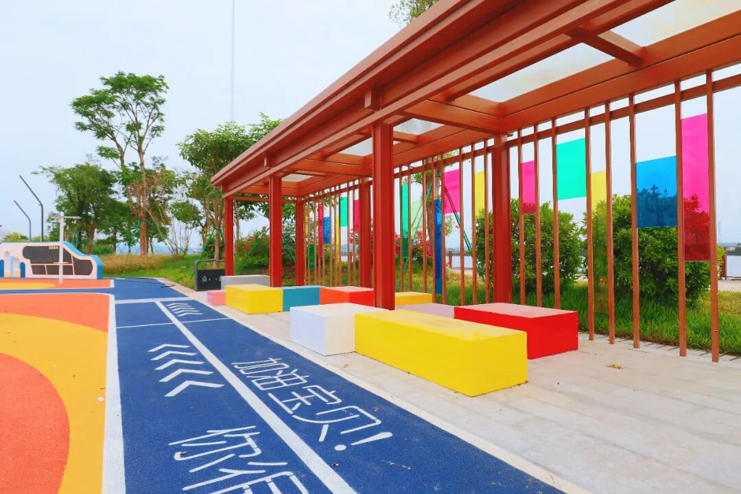 此外,一條蜿蜒的彩色健身跑道貫穿整個長廊,不僅滿足市民散步健身的需求,也成為大家親近自然、欣賞生態(tài)美景的紐帶。