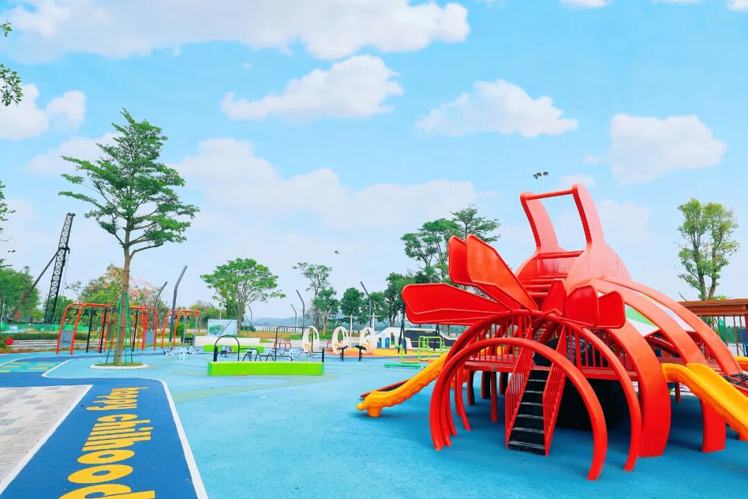 其中,面積達1630平方米的兒童樂園是長廊的核心亮點,園內(nèi)配備了大魚滑梯、迷你攀巖點、兒童健身器材等多樣化兒童設施,為不同年齡段兒童打造了一個安全益智的活力天地。