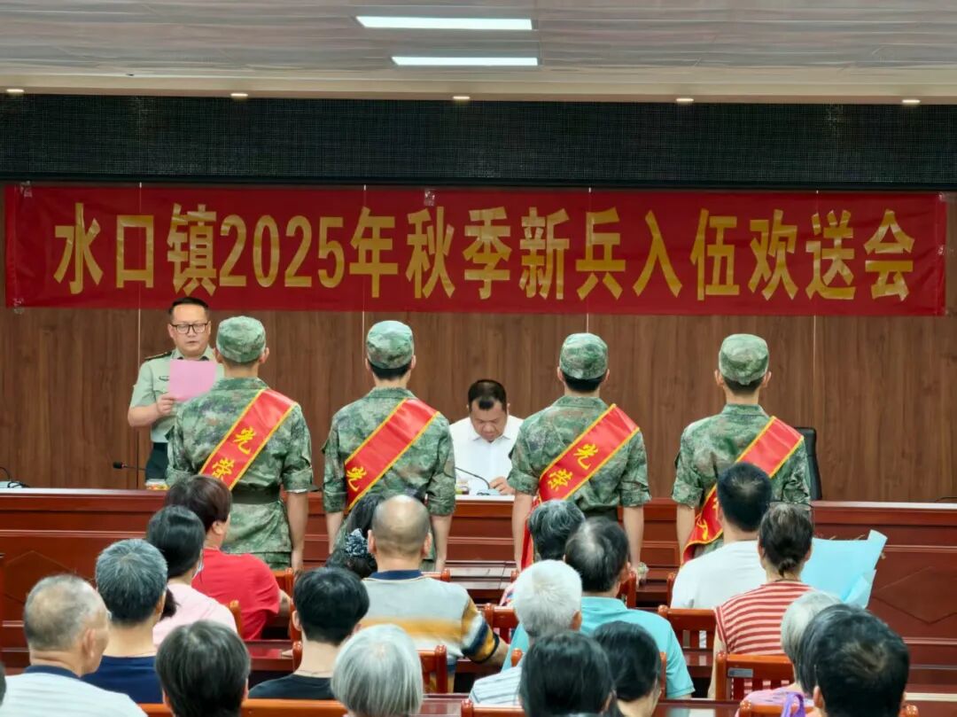 金秋九月送新兵,身披戎裝踏征程。9月14日,水口鎮(zhèn)舉行2025年秋季新兵入伍歡送會(huì)。10名熱血青年身著嶄新軍裝、胸佩鮮艷紅花,精神抖擻,意氣風(fēng)發(fā),即將告別故土親人,開啟軍旅新征程。水口鎮(zhèn)黨委副書記、鎮(zhèn)長(zhǎng)胡萬程出席歡送儀式并講話。鎮(zhèn)武裝部工作人員、村(社區(qū))干部和新兵家屬到場(chǎng)共同見證這一光榮而神圣的時(shí)刻。