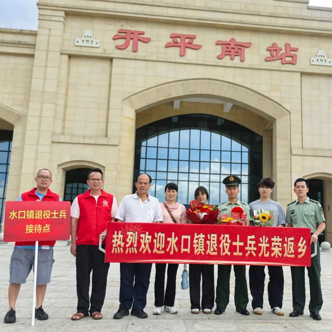 儀式現(xiàn)場,“熱烈歡迎水口鎮(zhèn)退役士兵光榮返鄉(xiāng)”的橫幅格外醒目,水口鎮(zhèn)退役軍人服務(wù)站工作人員和軍屬們早早齊聚開平南站,翹首以盼,靜候“最可愛的人”榮耀抵達。
