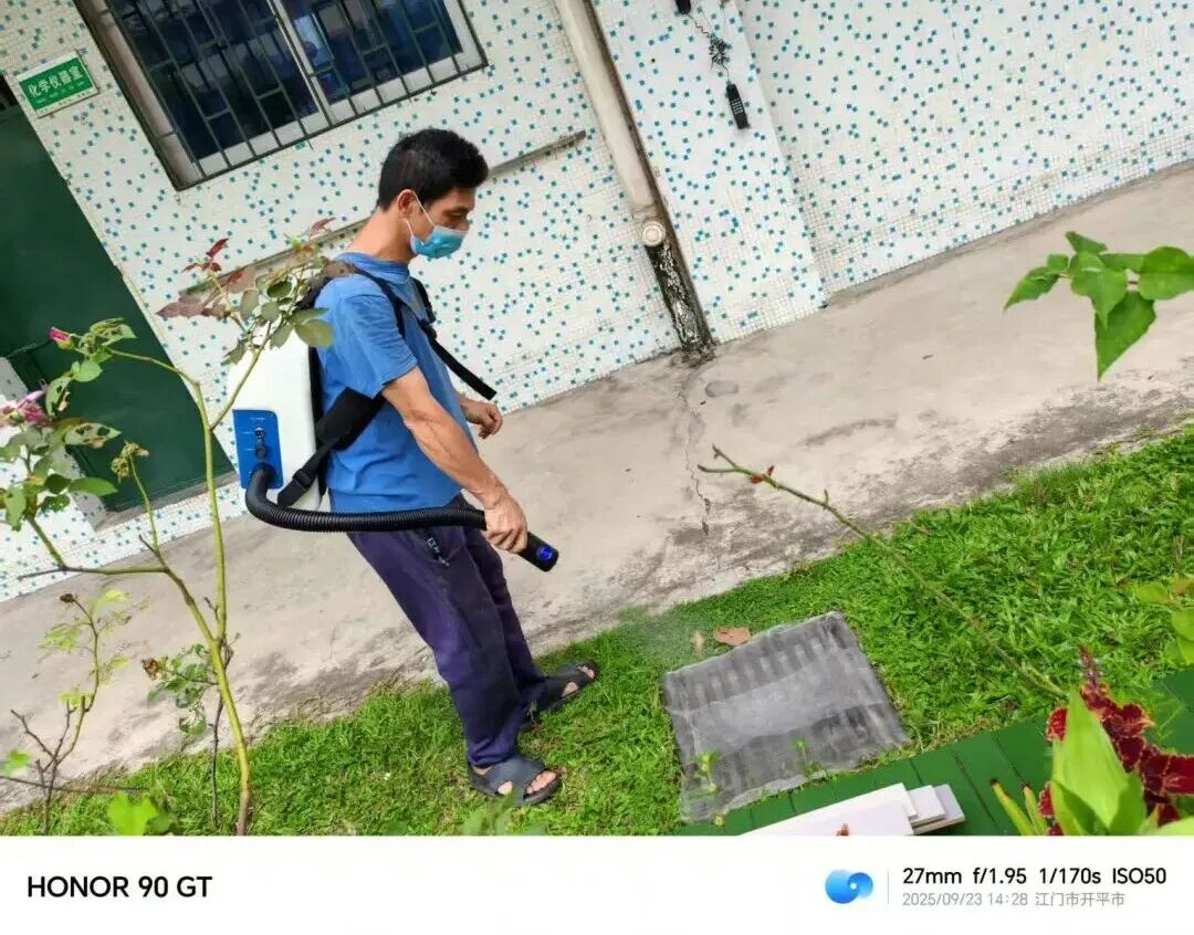 在環(huán)境清理基礎(chǔ)上,水口鎮(zhèn)各校嚴(yán)格對標(biāo)疫情防控工作要求,構(gòu)建起“消殺+監(jiān)測+防護(hù)”三維防控體系。消殺環(huán)節(jié),各校精準(zhǔn)發(fā)力,創(chuàng)新采用“懸藥滅蚊法”,對綠化帶、下水道集中噴殺,確保蚊蟲無處遁形。利用節(jié)日假期時間,投放倍磷硫殺蟲顆粒、點(diǎn)燃蚊片,對教室、睡室、下水道等重點(diǎn)區(qū)域?qū)I(yè)消毒。安排專人采用超低容量噴霧、熱煙霧處理等技術(shù),對食堂、衛(wèi)生間等人員密集場所開展全面消殺,反復(fù)作業(yè),有效降低蚊蟲密度。