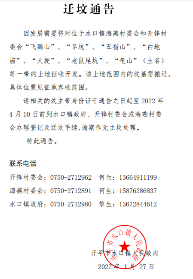 遷墳通告
