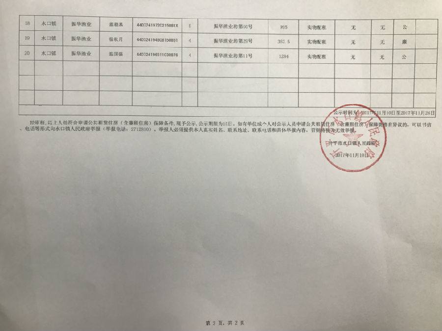 開平市水口鎮(zhèn)2017年下半年城鎮(zhèn)公共租賃住房(含廉租房)保障資格公示