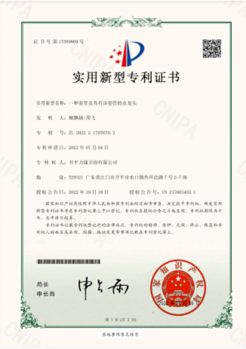 固本強(qiáng)根基,創(chuàng)新求發(fā)展。力蒲以“質(zhì)量為先,科技與管理并舉,堅(jiān)持‘上道工序滿足下道工序,竭誠(chéng)為顧客生產(chǎn)高品質(zhì)產(chǎn)品’”為發(fā)展方向,傳承東方智慧,弘揚(yáng)工匠精神,以精工匠心鑄造品質(zhì)過(guò)硬的產(chǎn)品,同時(shí)堅(jiān)持技術(shù)創(chuàng)新,順應(yīng)行業(yè)智能化、高端化的發(fā)展趨勢(shì),積極開展新產(chǎn)品、新工藝、新設(shè)備等研發(fā)工作,力蒲分別于2017年和2019年組了“江門市高端衛(wèi)浴五金制品工程技術(shù)研究中心”和“廣東省衛(wèi)浴五金管件工程技術(shù)研究中心”以平臺(tái)管理的方式保障和推動(dòng)公司技術(shù)創(chuàng)新工作。2021年,順利通過(guò)了國(guó)家高新技術(shù)企業(yè)的認(rèn)定(復(fù)審)。2022年,成功被評(píng)為省級(jí)專精特新中小企業(yè)。截至目前,力蒲獲得發(fā)明專利1項(xiàng)和實(shí)用新型專利33項(xiàng),另有4項(xiàng)發(fā)明專利和9項(xiàng)實(shí)用新型專利正在申請(qǐng)中,為企業(yè)的長(zhǎng)遠(yuǎn)發(fā)展積蓄動(dòng)力。