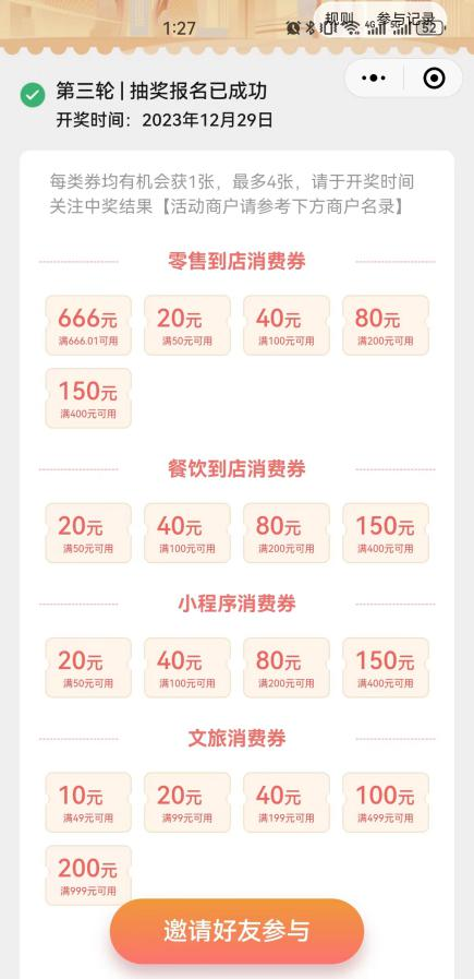 *12月29日7:00—9:00起陸續(xù)開獎,公眾可在“廣東消費(fèi)券”微信小程序查詢中簽結(jié)果。