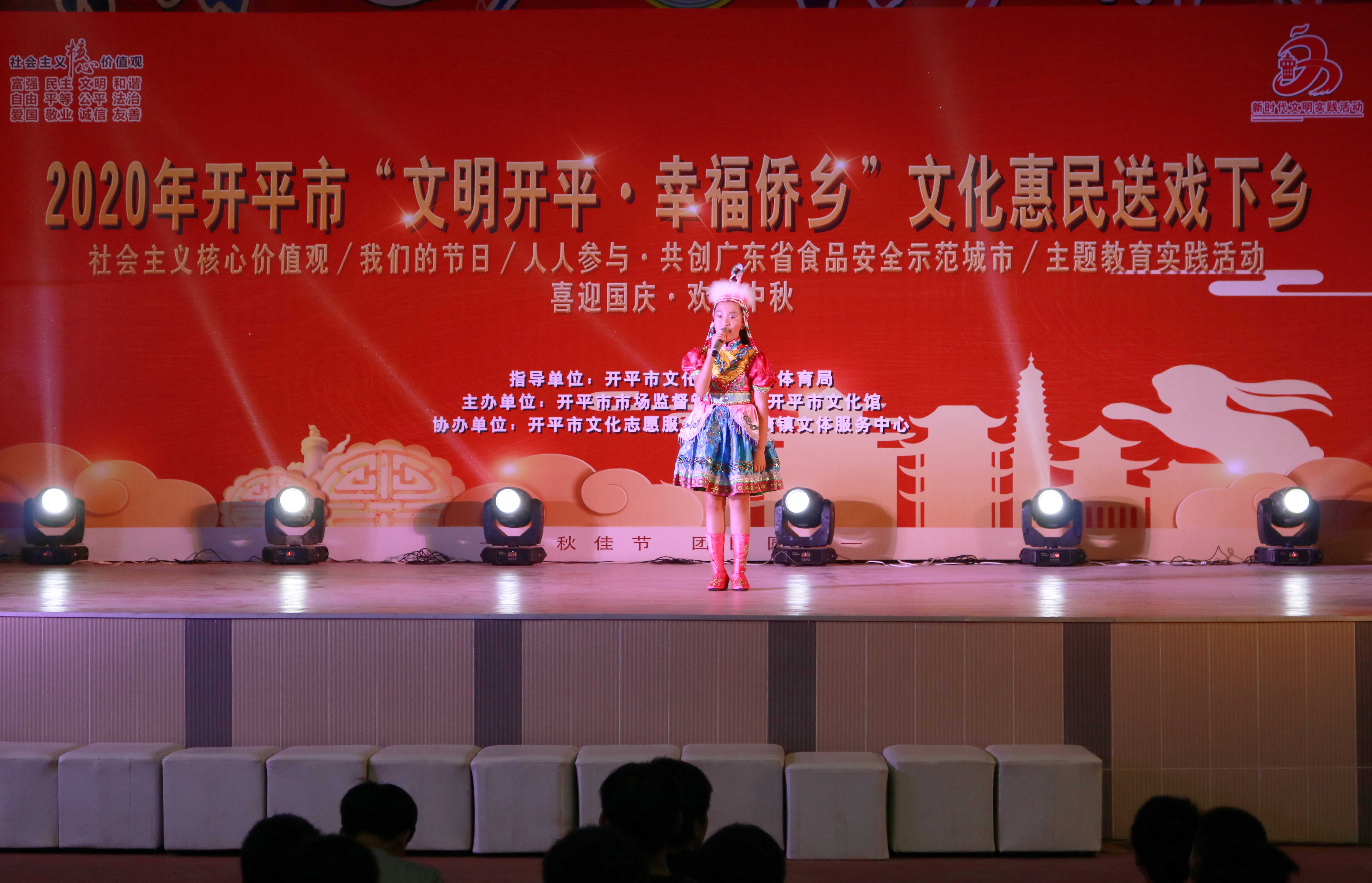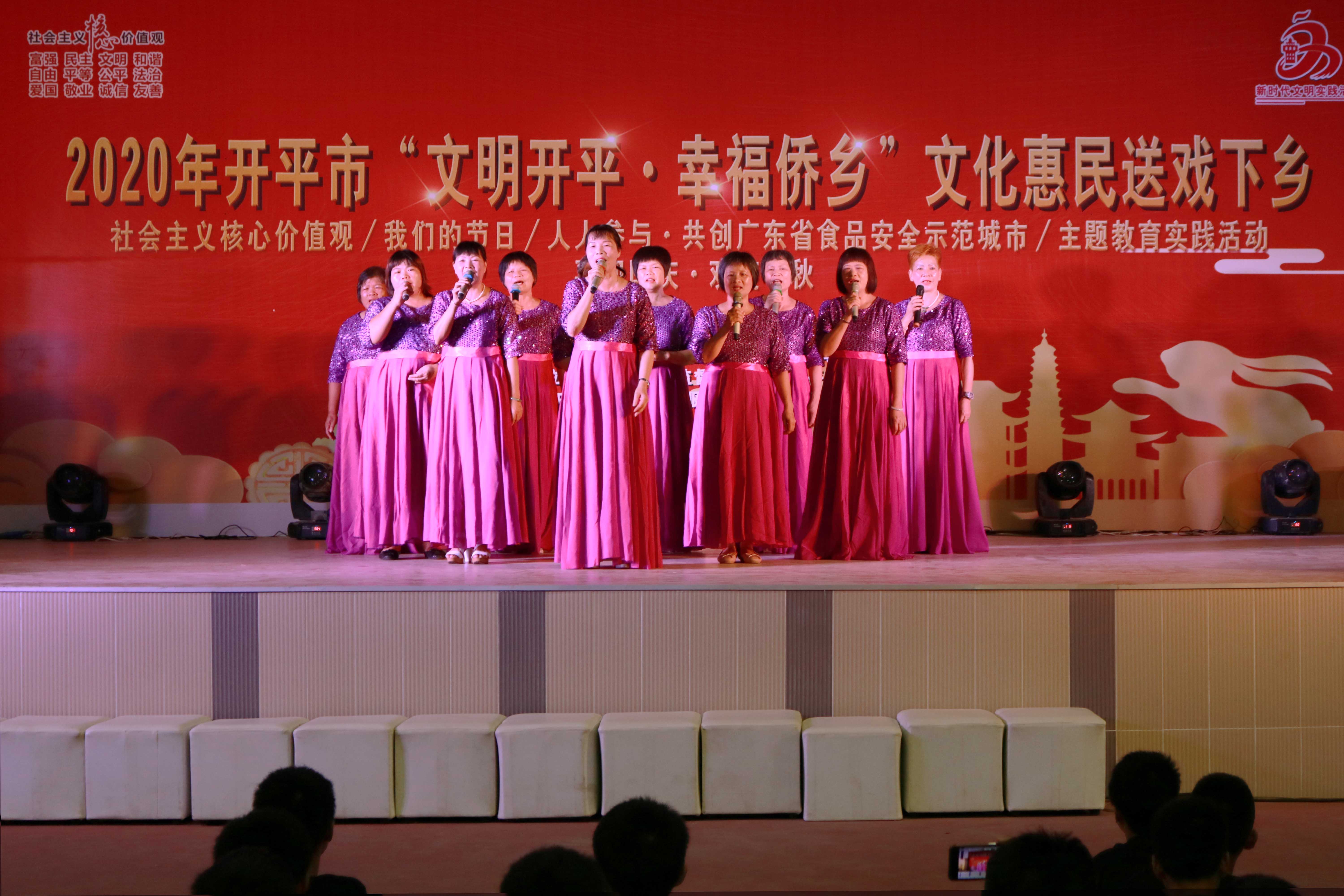 本次活動(dòng)節(jié)目形式豐富,貼近群眾、貼近生活,符合人民群眾的審美需求,涉及群舞、童聲小組唱、開平民歌表演唱、小提琴獨(dú)奏、小品、粵劇折子戲等表演形式,為我鎮(zhèn)廣大群眾上演一場(chǎng)賞心悅目的視聽盛宴,得到群眾的廣泛贊許。同時(shí),依托不同節(jié)目開展黨建引領(lǐng)、鄉(xiāng)村振興、我們的節(jié)日、社會(huì)主義核心價(jià)值觀宣傳?,F(xiàn)場(chǎng)還發(fā)放食品安全宣傳手冊(cè)、派發(fā)“文明餐桌”宣傳單張,進(jìn)一步倡導(dǎo)綠色生活新風(fēng)尚,助力開平創(chuàng)建廣東省食品安全示范城市。