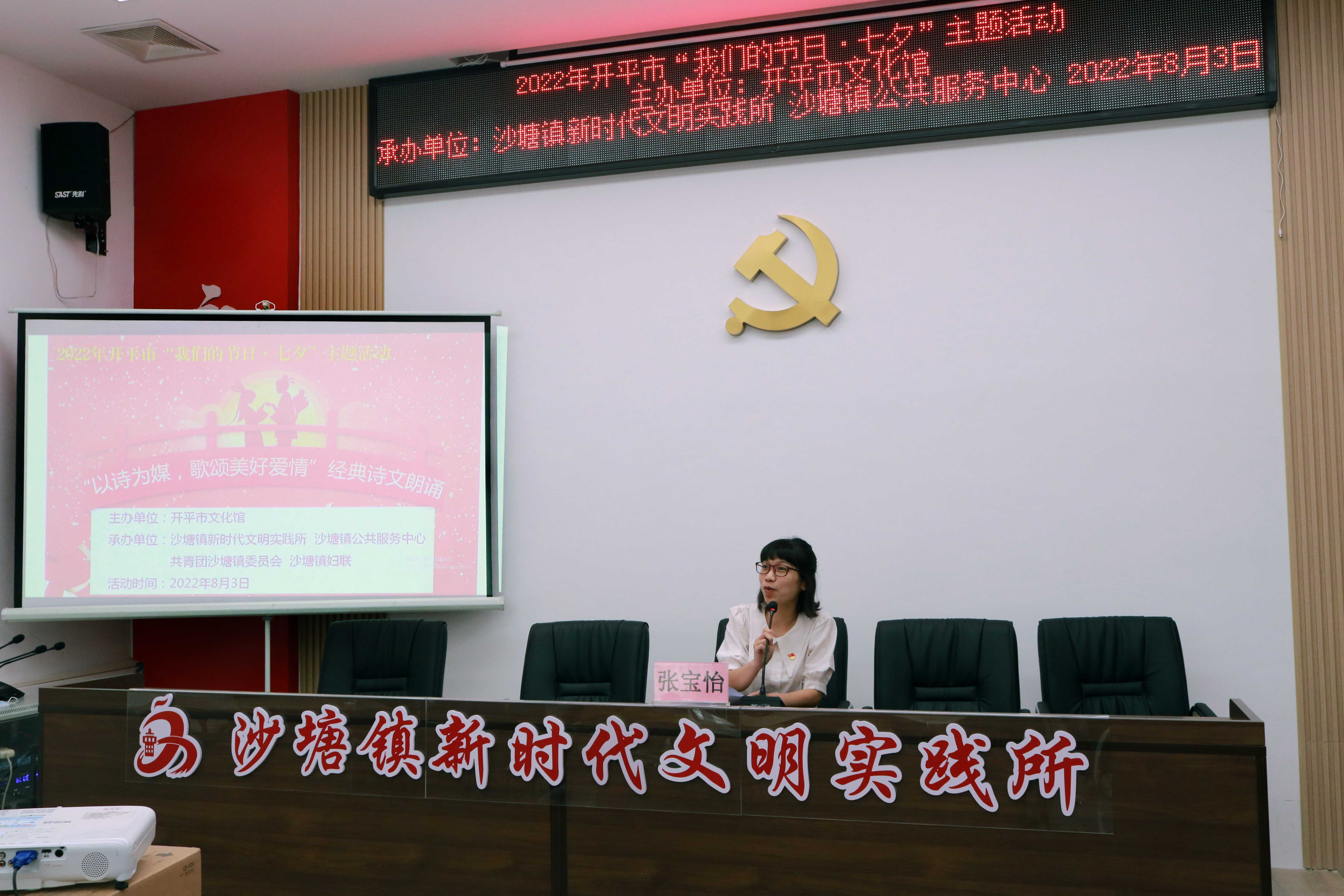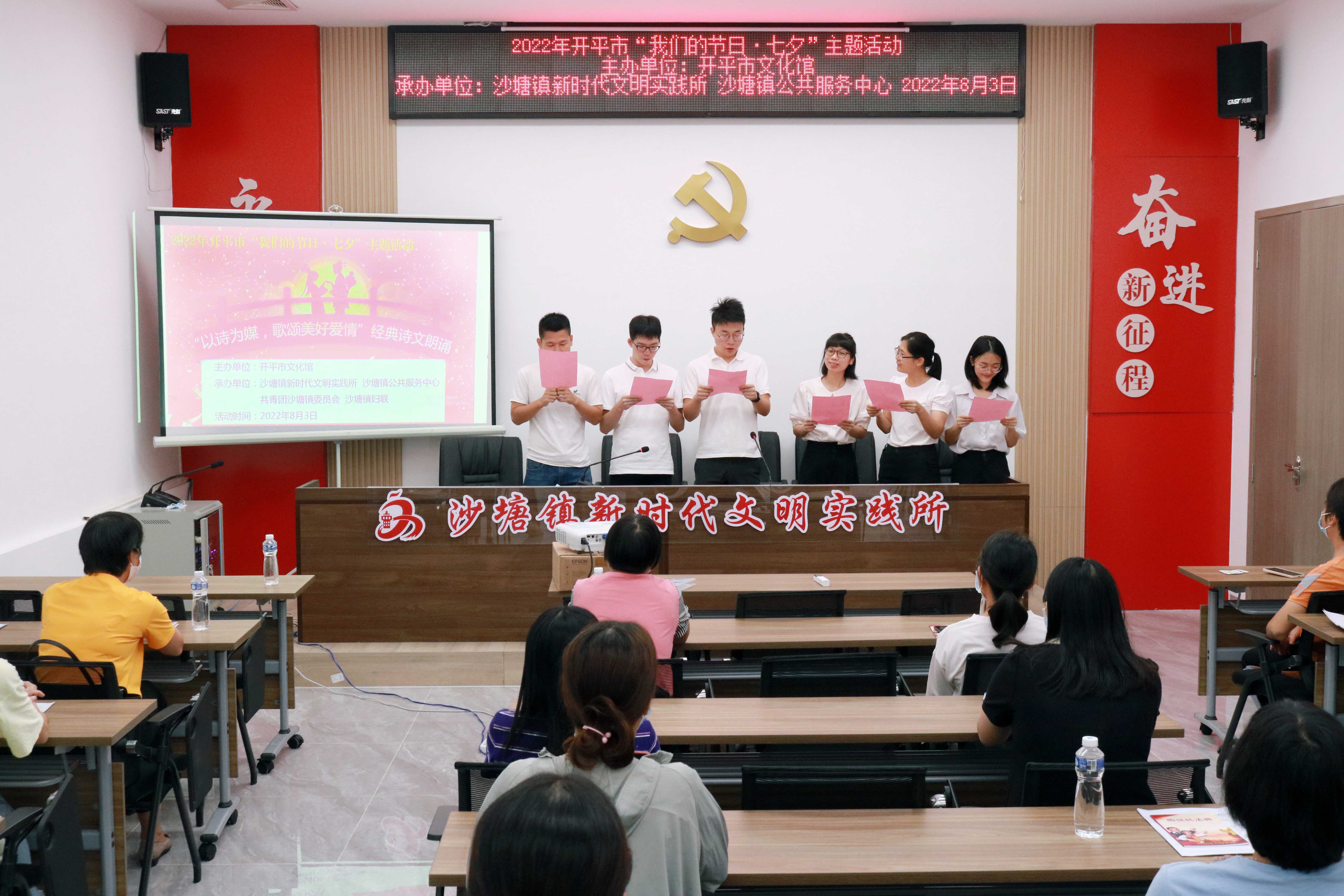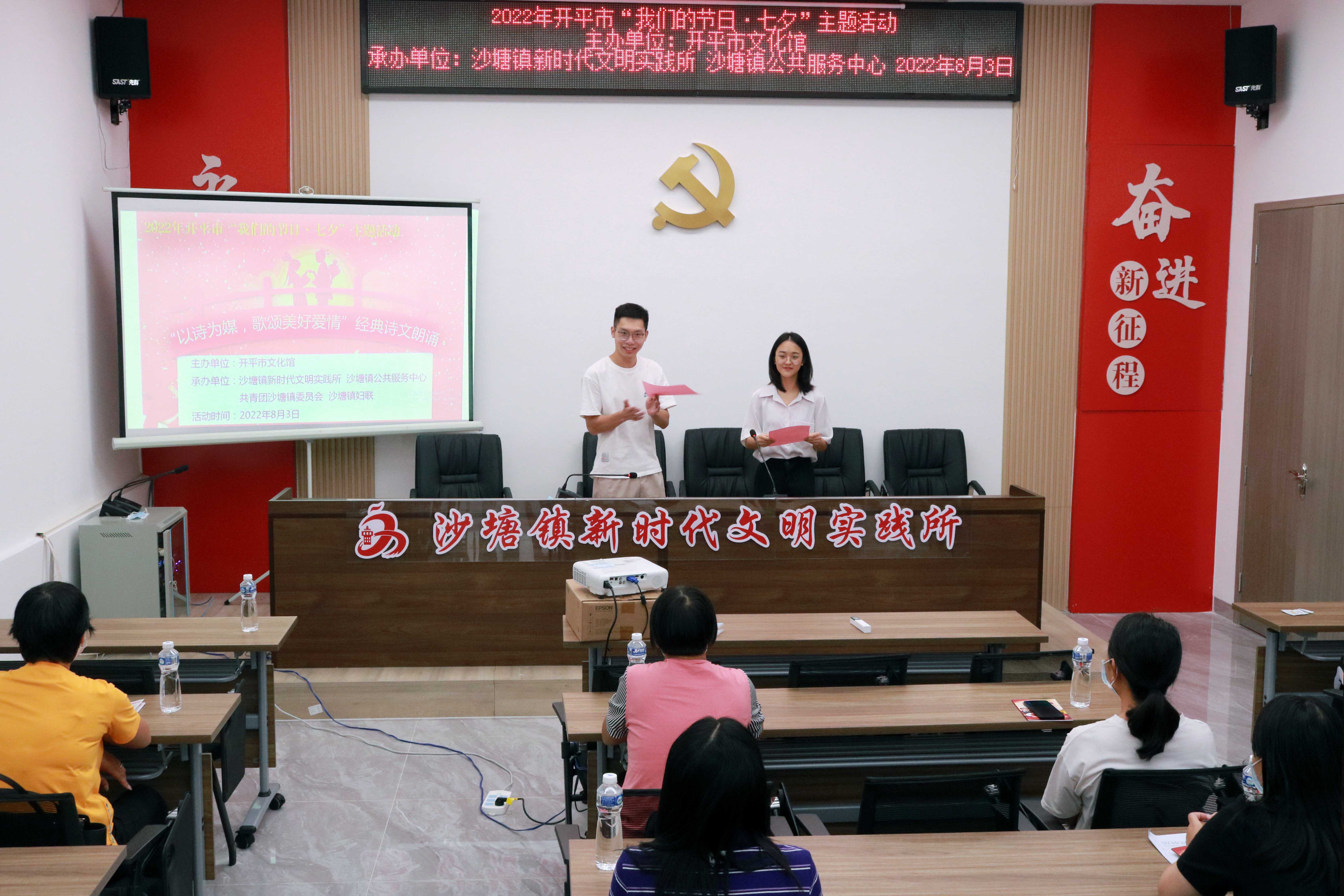 8月3日上午,在傳統(tǒng)佳節(jié)七夕到來(lái)之際,為豐富干部群眾的精神文化生活,沙塘鎮(zhèn)舉辦“以詩(shī)為媒,歌頌美好愛(ài)情”經(jīng)典詩(shī)文朗誦活動(dòng),來(lái)自沙塘鎮(zhèn)各村(社區(qū))、部門(mén)的40多名青年同志參與。